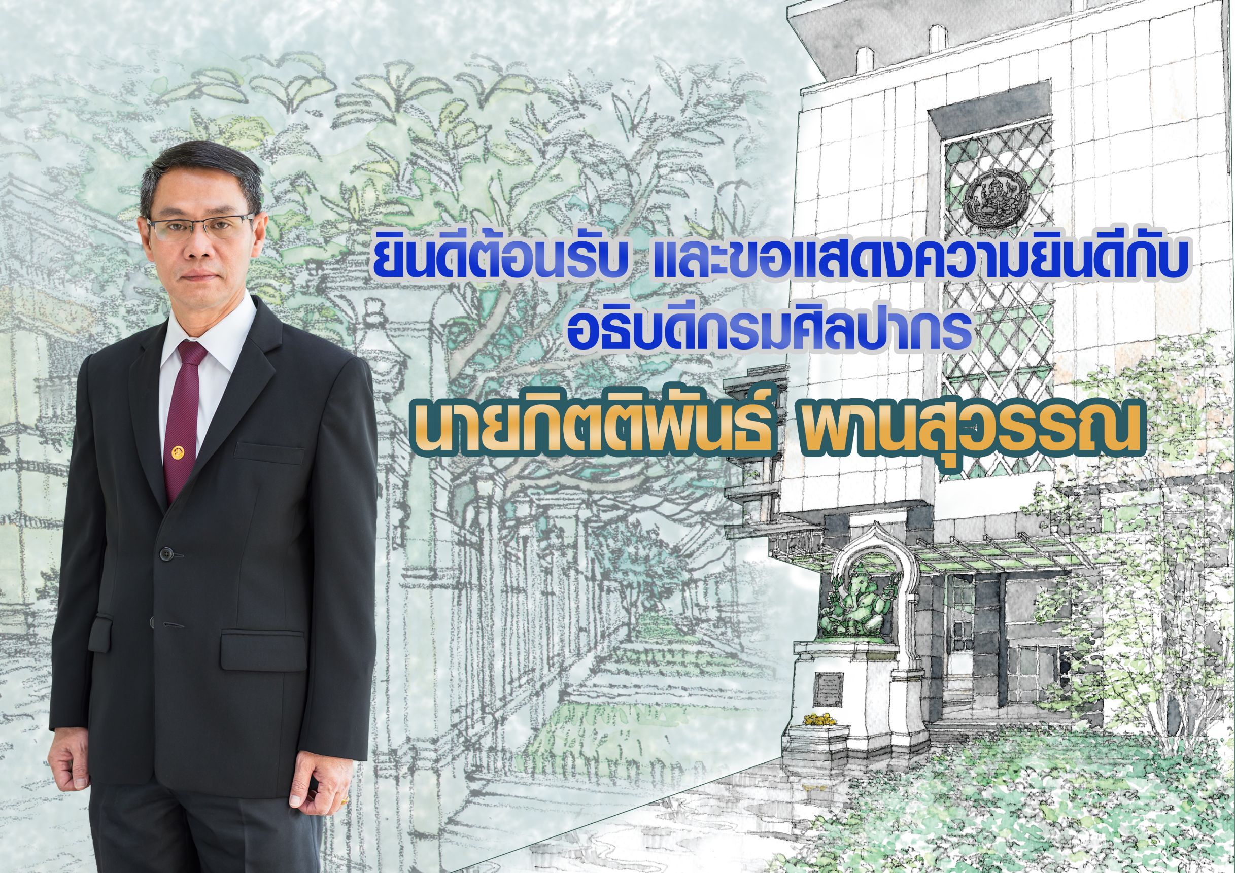 ยินดีต้อนรับ และขอแสดงความยินดีกับอธิบดีกรมศิลปากร นายกิตติพันธ์ พานสุวรรณ