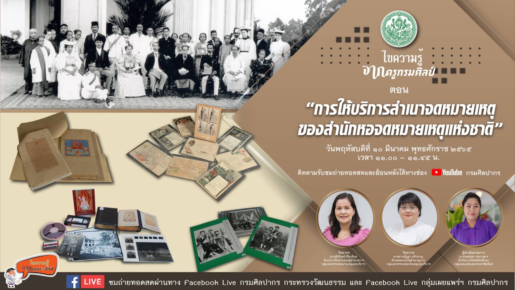ขอเชิญชม Facebook Live รายการไขความรู้จากครูกรมศิลป์ “การให้บริการสำเนาจดหมายเหตุของสำนักหอจดหมายเหตุแห่งชาติ”
