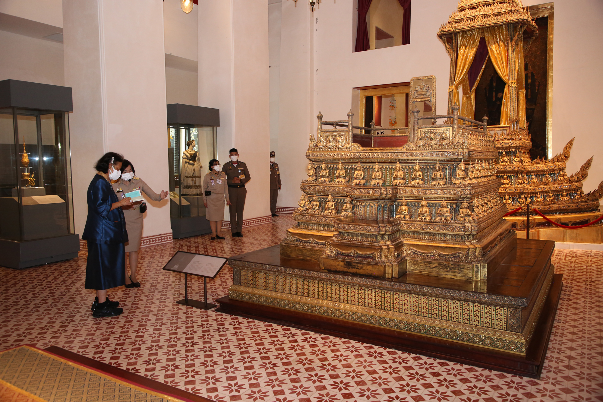 จากนั้นเสด็จฯ ไปยังพระที่นั่งศิวโมกขพิมาน ทรงตัดแถบแพรเปิดนิทรรศการ และทอดพระเนตรนิทรรศการพิเศษ เนื่องในวันอนุรักษ์มรดกไทย พุทธศักราช ๒๕๖๕ โอกาสนี้ เสด็จฯ ไปยังหมู่พระวิมาน ทอดพระเนตรนิทรรศการถาวร “ประณีตศิลป์สยาม ณ หมู่พระวิมาน พระราชวังบวรสถานมงคล” ด้วย