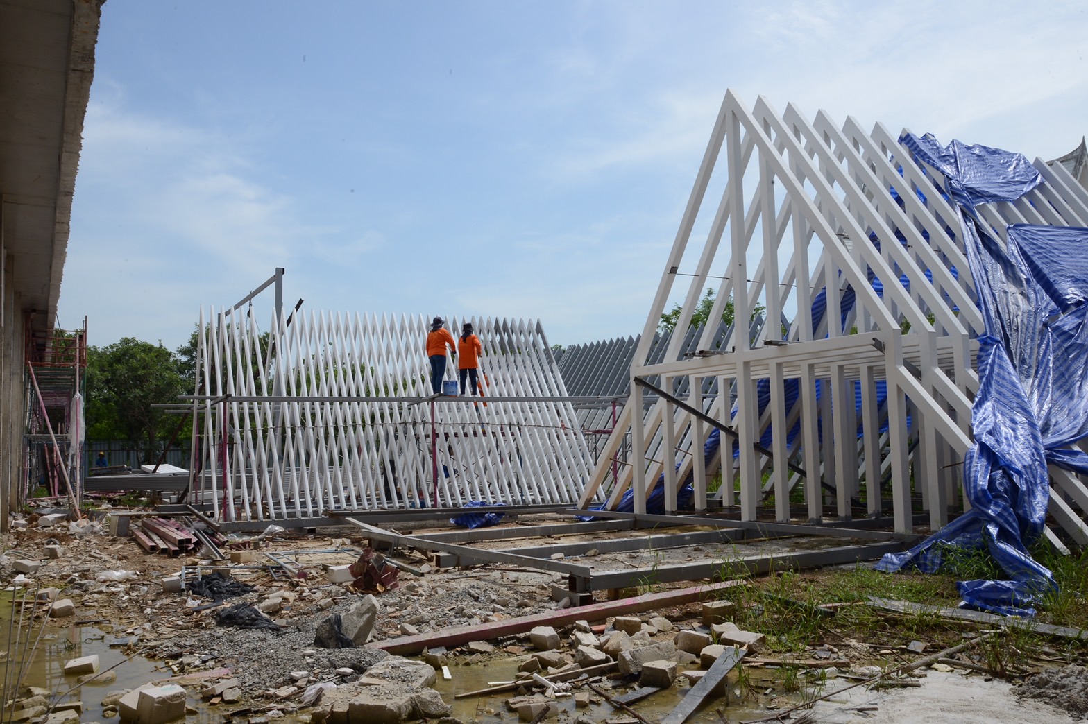 อธิบดีกรมศิลปากรตรวจการก่อสร้างอาคารพิพิธภัณฑสถานงานพระราชพิธีถวายพระเพลิงพระบรมศพ พระบาทสมเด็จพระปรมินทรมหาภูมิพลอดุลยเดช