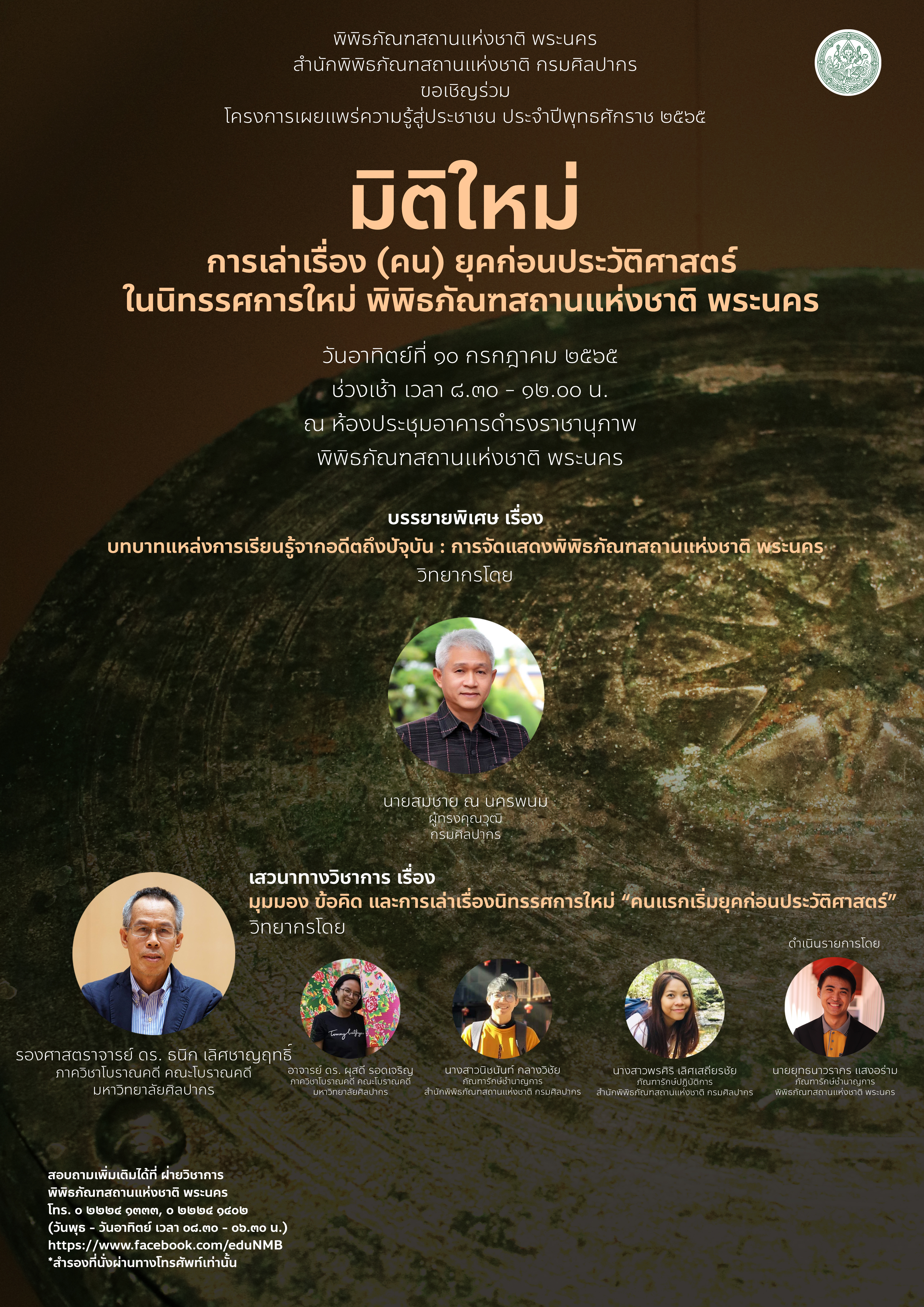 ขอเชิญร่วมโครงการเผยแพร่ความรู้สู่ประชาชน "มิติใหม่การเล่าเรื่อง (คน) ยุคก่อนประวัติศาสตร์ ในนิทรรศการใหม่ พิพิธภัณฑสถานแห่งชาติ พระนคร"