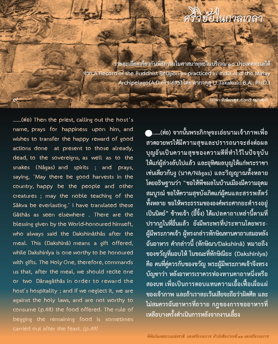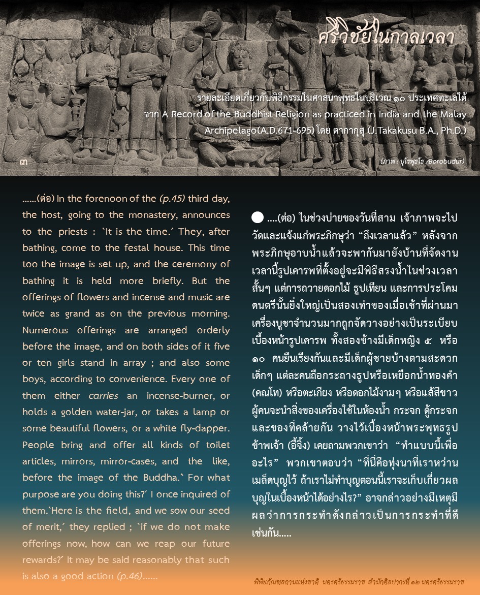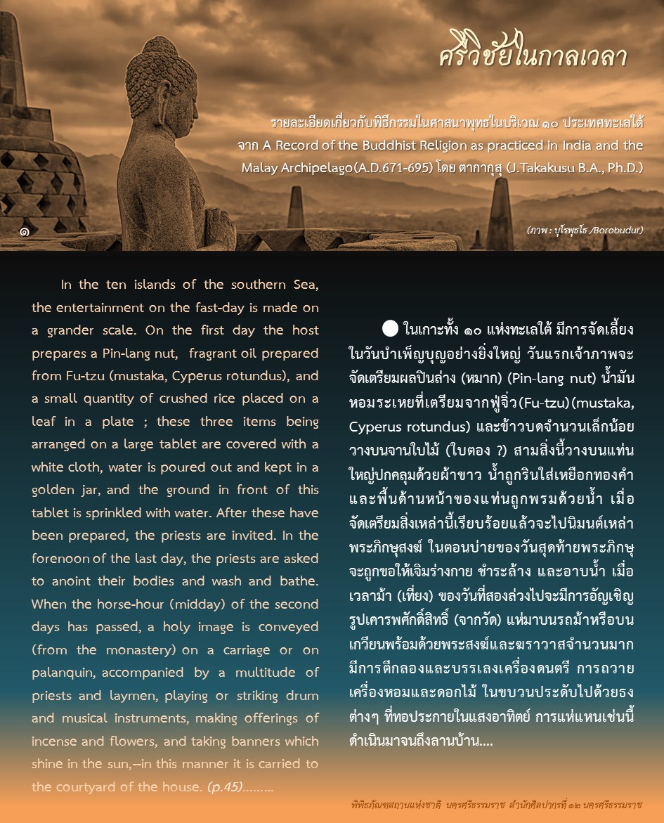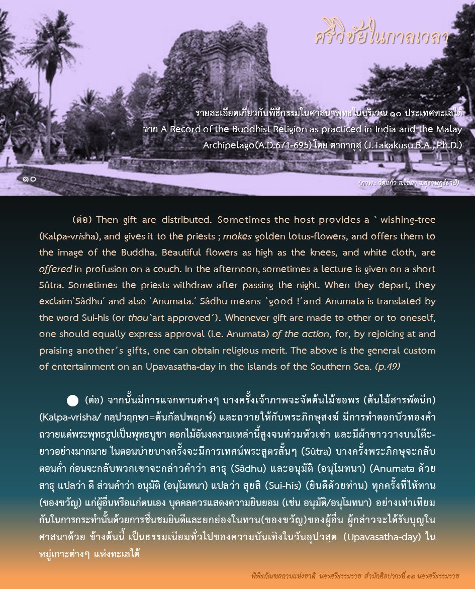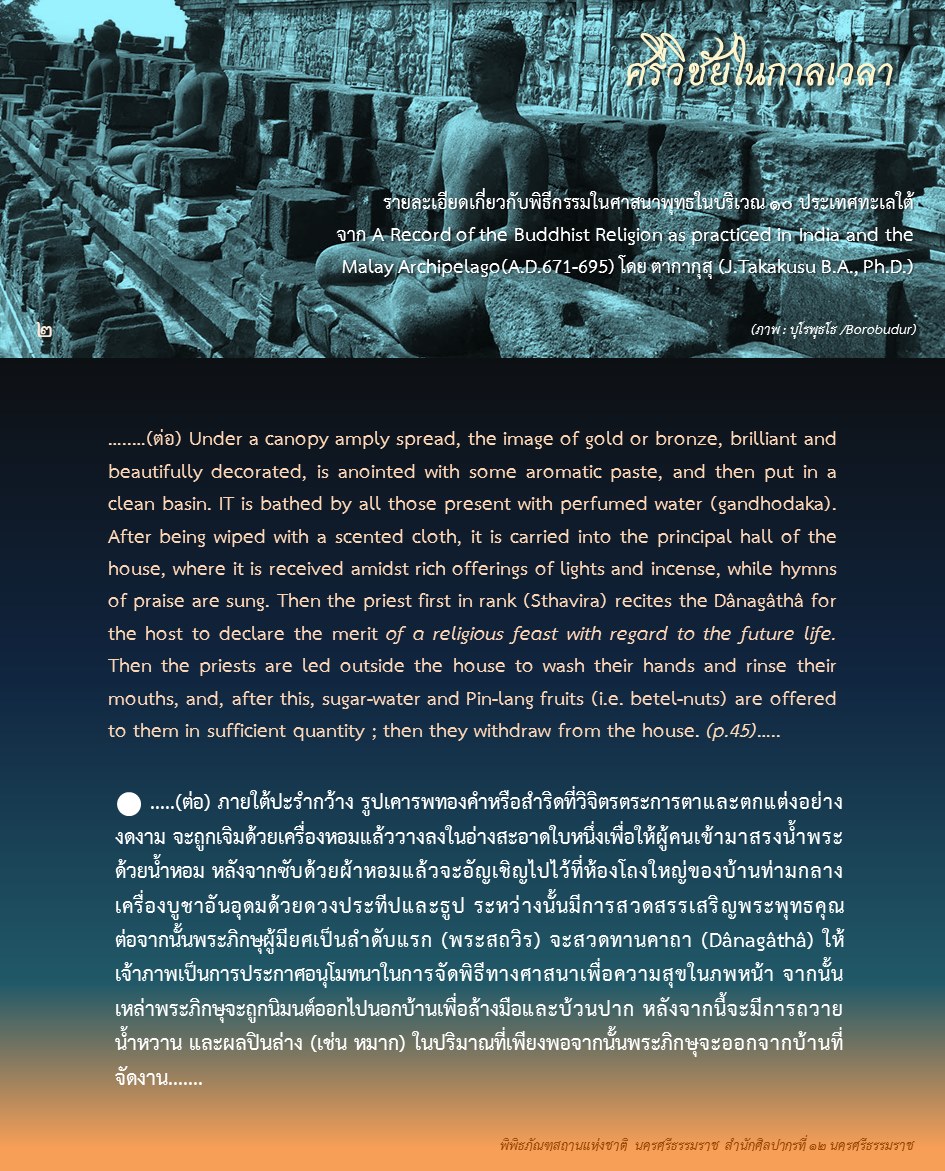 องค์ความรู้จากพิพิธภัณฑสถานแห่งชาติ นครศรีธรรมราช เรื่อง ศรีวิชัยในกาลเวลา ตอน : ศรีวิชัยในความทรงจำของพระภิกษุอี้จิ้ง ค้นคว้าและเรียบเรียงโดย นางสาวสุขกมล วงศ์สวรรค์ ภัณฑารักษ์ชำนาญการพิเศษ