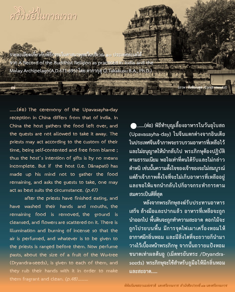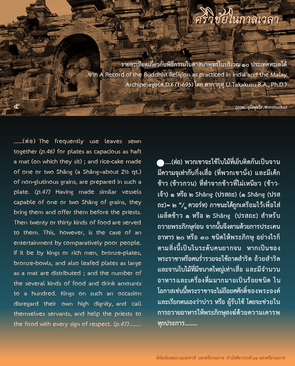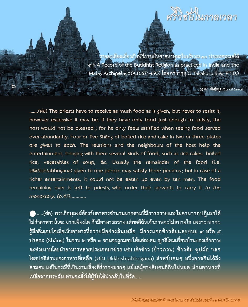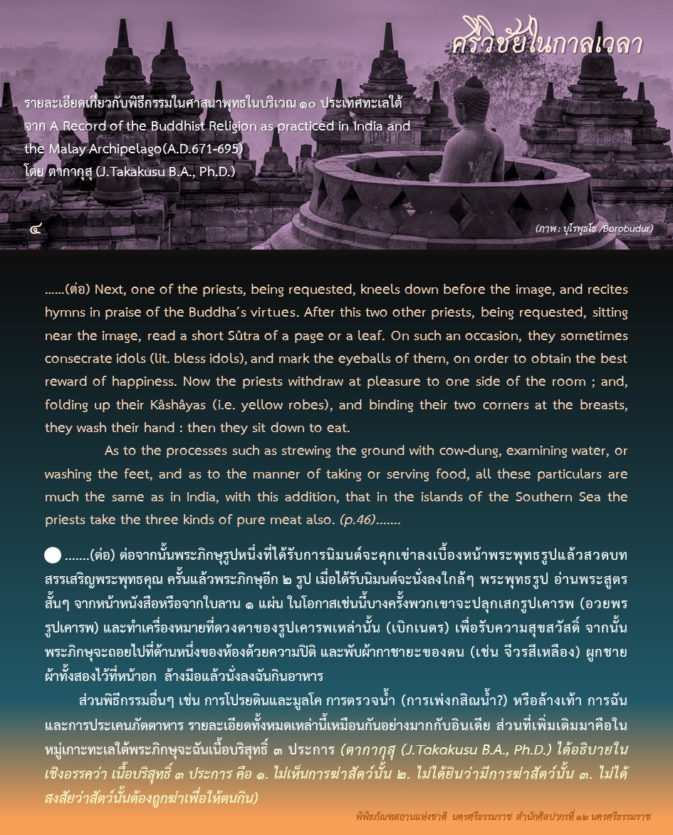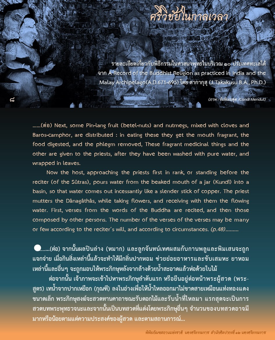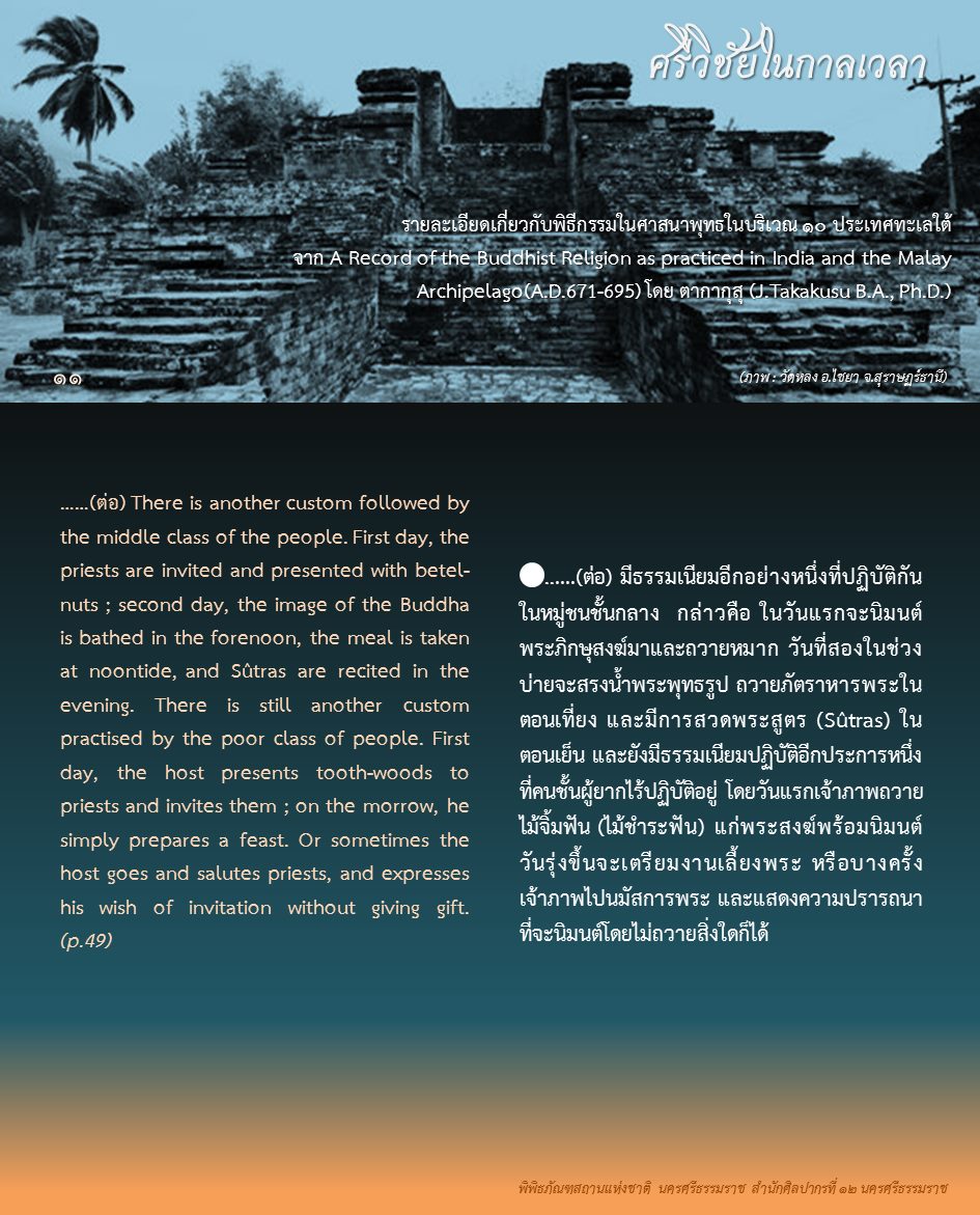 องค์ความรู้จากพิพิธภัณฑสถานแห่งชาติ นครศรีธรรมราช เรื่อง ศรีวิชัยในกาลเวลา ตอน : ศรีวิชัยในความทรงจำของพระภิกษุอี้จิ้ง ค้นคว้าและเรียบเรียงโดย นางสาวสุขกมล วงศ์สวรรค์ ภัณฑารักษ์ชำนาญการพิเศษ