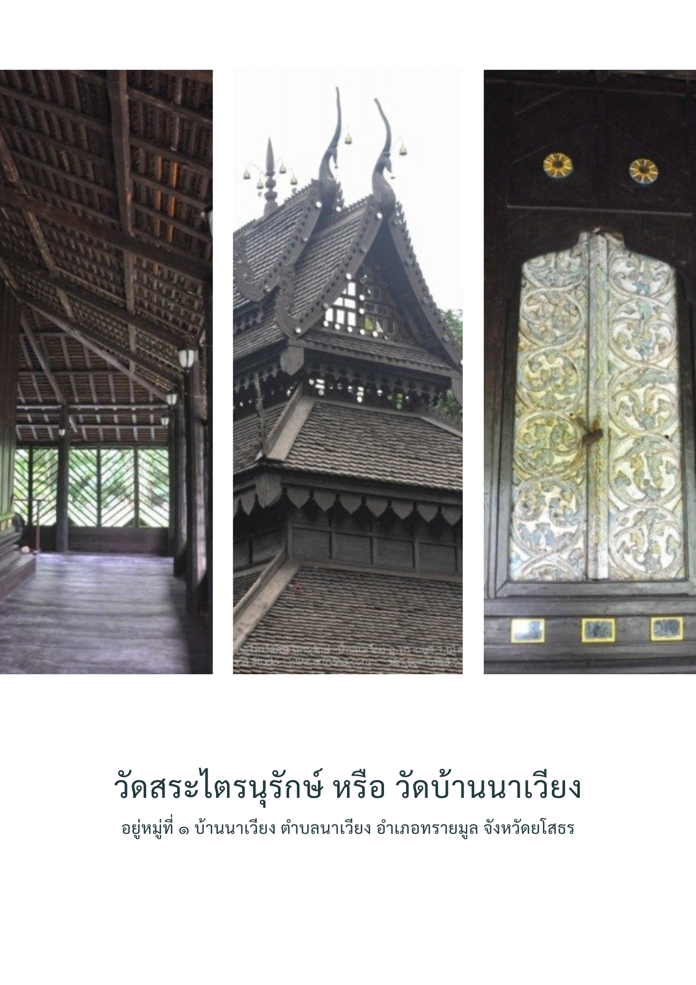 วัดสระไตรนุรักษ์ หรือ วัดบ้านนาเวียง อยู่หมู่ที่ ๑ บ้านนาเวียง ตำบลนาเวียง อำเภอทรายมูล จังหวัดยโสธร ประวัติวัดสระไตรนุรักษ์ หรือวัดบ้านนาเวียง สร้างในช่วงพุทธศตวรรษที่ ๒๔ โดยพระครูหลักคำ (ชา) ภิกษุชาวลาว ภายหลังได้บูรณะใน พ.ศ.๒๔๕๐ ภายในวัดมีโบราณสถานสำคัญ ได้แก่ หอไตรหอไตร ตั้งอยู่กลางสระน้ำ มีลักษณะสถาปัตยกรรมแบบอีสาน-ล้านช้าง ที่ได้รับอิทธิพลไทยใหญ่ ดังจะเห็นได้จากชุดหลังคาจั่วซ้อนชั้น และทำชายคาปีกนกซ้อนชั้นยื่นออกทั้งสี่ด้าน มุงกระเบื้องแป้นเกล็ด คล้ายกับชุดหลังคาหอไตรวัดทุ่งศรีเมือง จังหวัดอุบลราชธานี เสาและตัวอาคารสร้างด้วยไม้ หันหน้าไปทางทิศตะวันตก ขนาดกว้าประมาณ ๘.๓๐ เมตร ยาวประมาณ ๑๐.๕๐ เมตร บานประตูแกะสลักลายเครือเถาขดเป็นวงกลมซ้อนต่อเนื่องกันตลอดทั้งสองบาน ตรงกลางอาคารเป็นห้องทึบ ขนาดกว้างประมาณ ๓.๕๐ เมตร ยาวประมาณ ๕.๐๐ เมตร สำหรับเก็บคัมภีร์ มีทางเดินโดยรอบ หอไตรหลังนี้ได้รับการบูรณะครั้งหลังสุดเมื่อ พ.ศ.๒๕๕๕