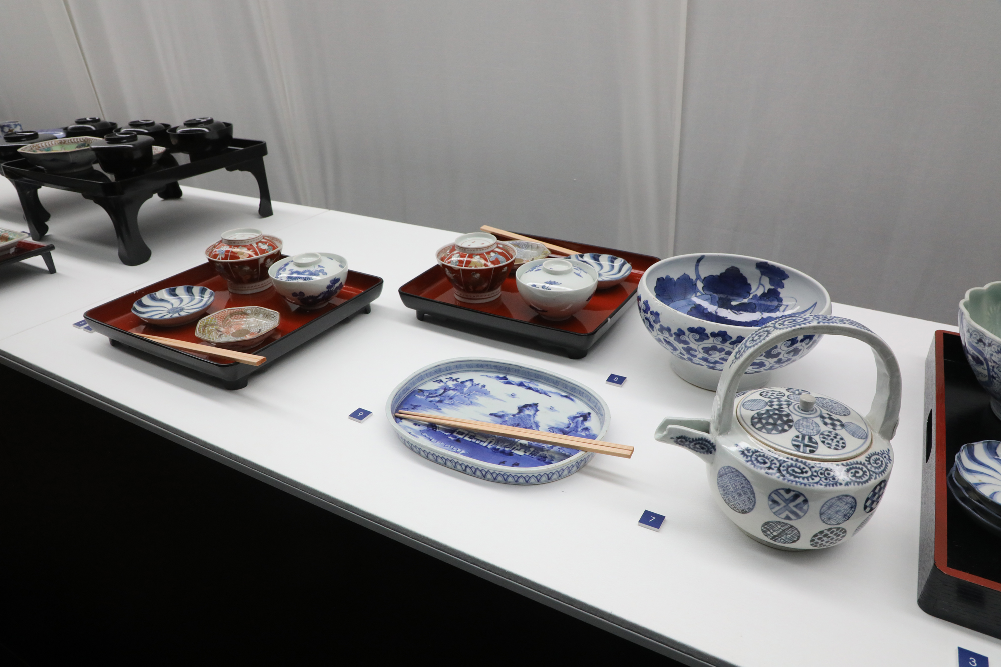 โบราณวัตถุเครื่องปั้นดินเผาอาริตะชิ้นสำคัญจากพิพิธภัณฑสถานเซรามิกแห่งคิวชู ประเทศญี่ปุ่น ที่นำมาจัดแสดง อาทิ เด็กชายจับปลาดุกด้วยน้ำเต้า ตกแต่งด้วยการเขียนสีบนเคลือบ พุทธศักราช ๒๒๑๓ – ๒๒๕๒ จานลายครามแบบคารากขนาดใหญ่เขียนลายนกฟินิกซ์และตราวีโอซี พุทธศักราช ๒๒๓๓ – ๒๒๖๒ ขวดทรงแปรงตีชาเขียนลายบนเคลือบ เป็นลายดอกโบตั๋น พุทธศักราช ๒๑๙๓ – ๒๒๐๓ สำหรับโบราณวัตถุของไทย ที่นำมาจัดแสดง อาทิ ชุดชามเบญจรงค์ พุทธศตวรรษที่ ๒๔ กระปุกสังคโลกสองหู พุทธศตวรรษที่ ๑๙ – ๒๑ จากแหล่งเตาศรีสัชนาลัย จังหวัดสุโขทัย กุณฑีสังคโลก พุทธศตวรรษที่ ๒๐ – ๒๑ ได้จากการขุดค้นที่วัดมหาธาตุ จังหวัดสุโขทัย