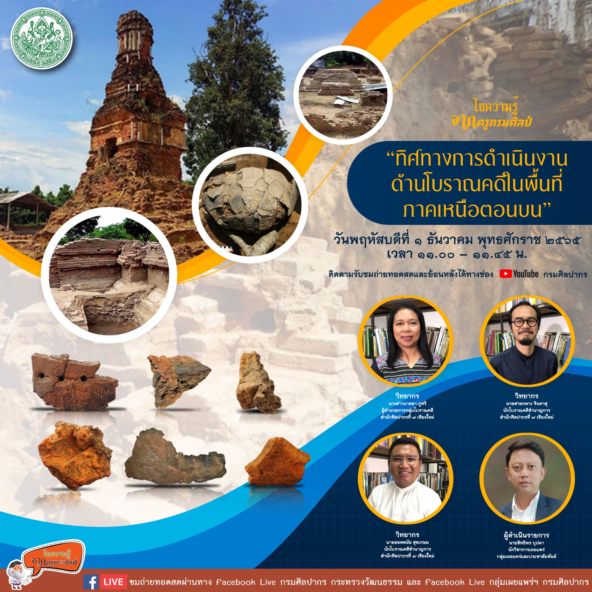 ขอเชิญรับชม Facebook Live รายการไขความรู้จากครูกรมศิลป์ “ทิศทางการดำเนินงานด้านโบราณคดีในพื้นที่ภาคเหนือตอนบน”