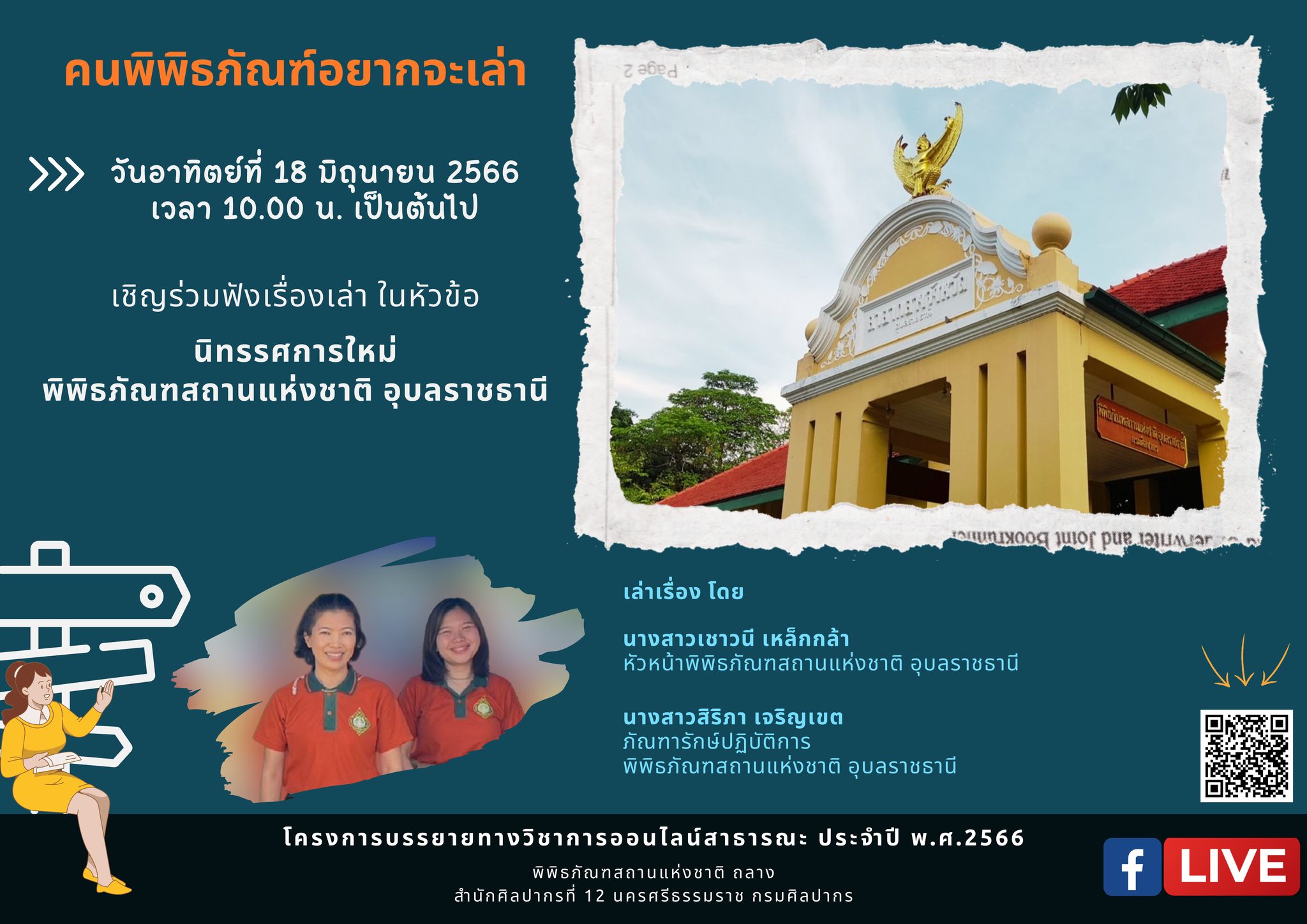 ขอเชิญรับชม Facebook Live "คนพิพิธภัณฑ์อยากจะเล่า" หัวข้อ “นิทรรศการใหม่ พิพิธภัณฑสถานแห่งชาติ อุบลราชธานี”
