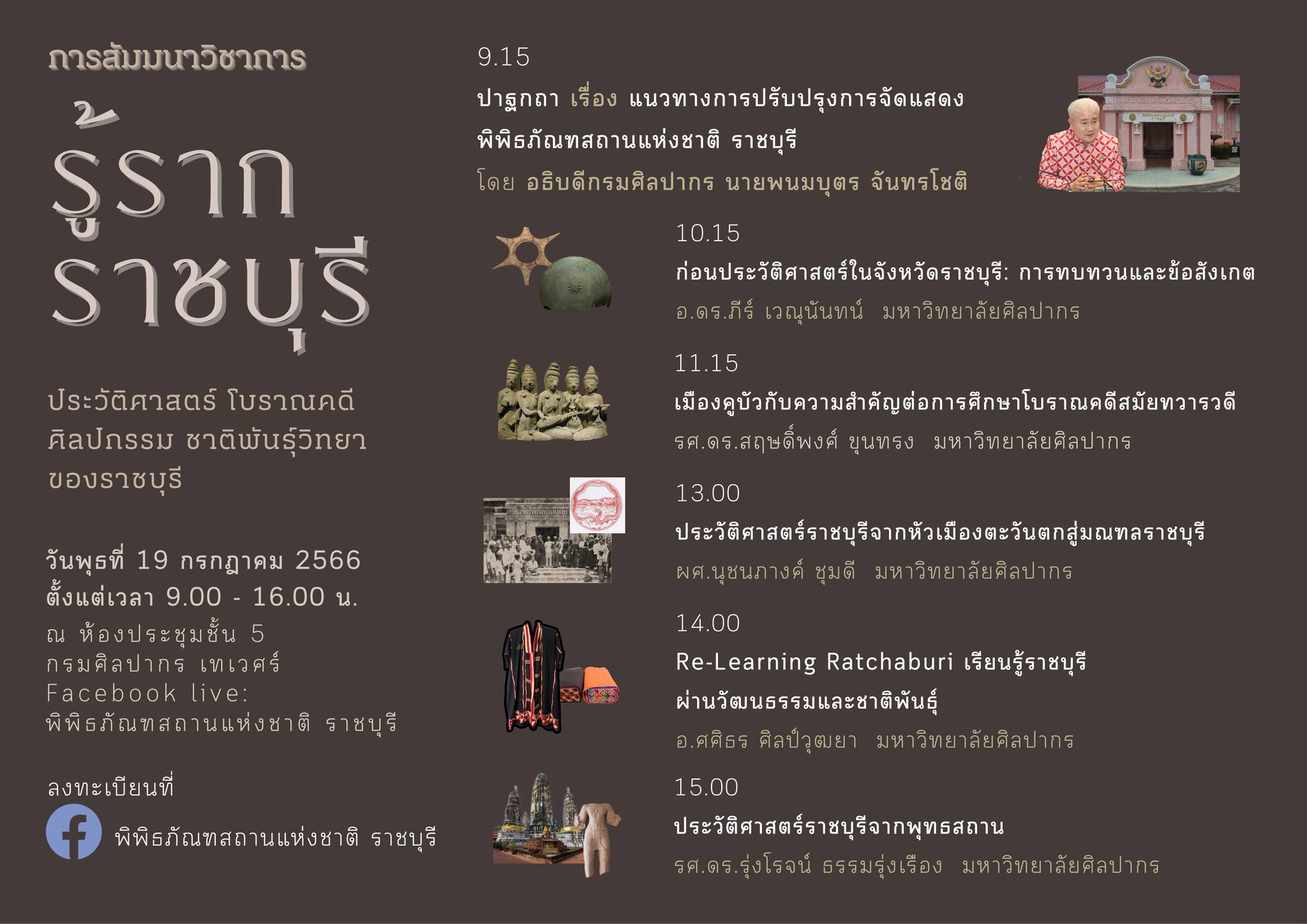 ขอเชิญร่วมฟังการสัมมนาวิชาการ "รู้รากราชบุรี" ประวัติศาสตร์ โบราณคดี ศิลปกรรม ชาติพันธุ์วิทยาของราชบุรี