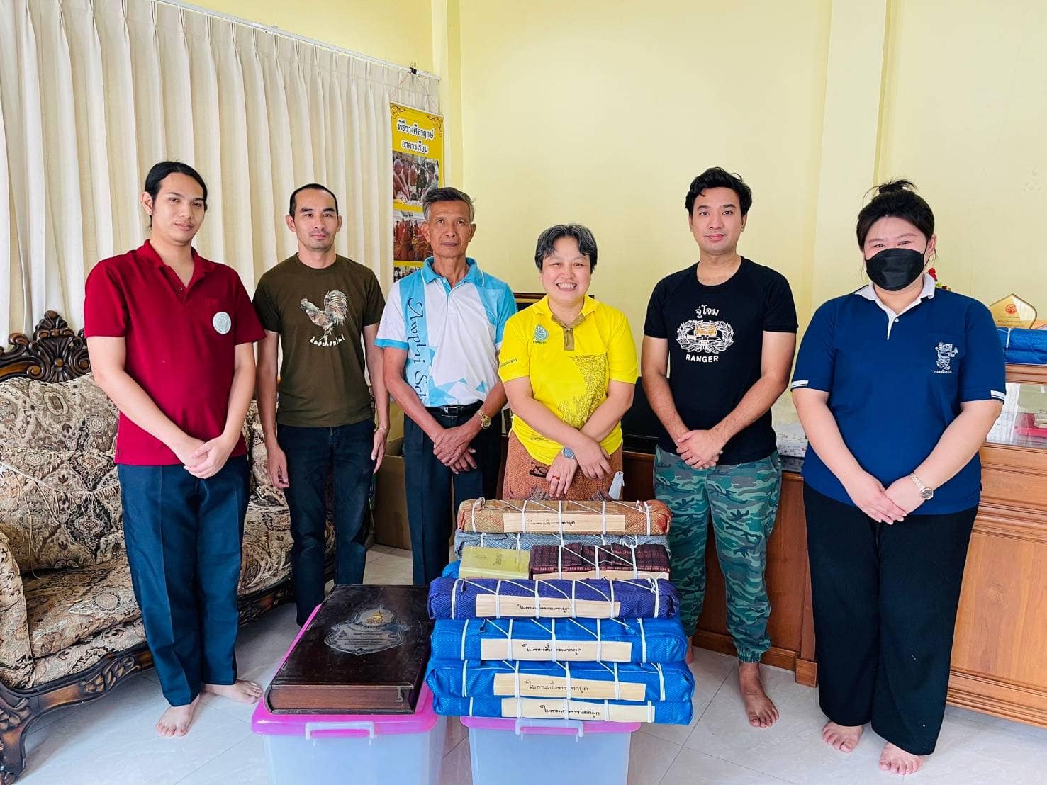 และขอขอบพระคุณ นางสาวอิสรีย์ นวกุลย์ชัย ผู้มีจิตศรัทธาภาคประชาชน เป็นผู้สนับสนุนการอนุรักษ์มรดกไทยดีเด่น ประจำปี 2563 และคณะได้บริจาคผ้าห่อคัมภีร์ใบลาน และไม้ประกับ เพื่อการอนุรักษ์เอกสารโบราณ ให้วัดบึง (พระอารามหลวง) จังหวัดนครราชสีมา