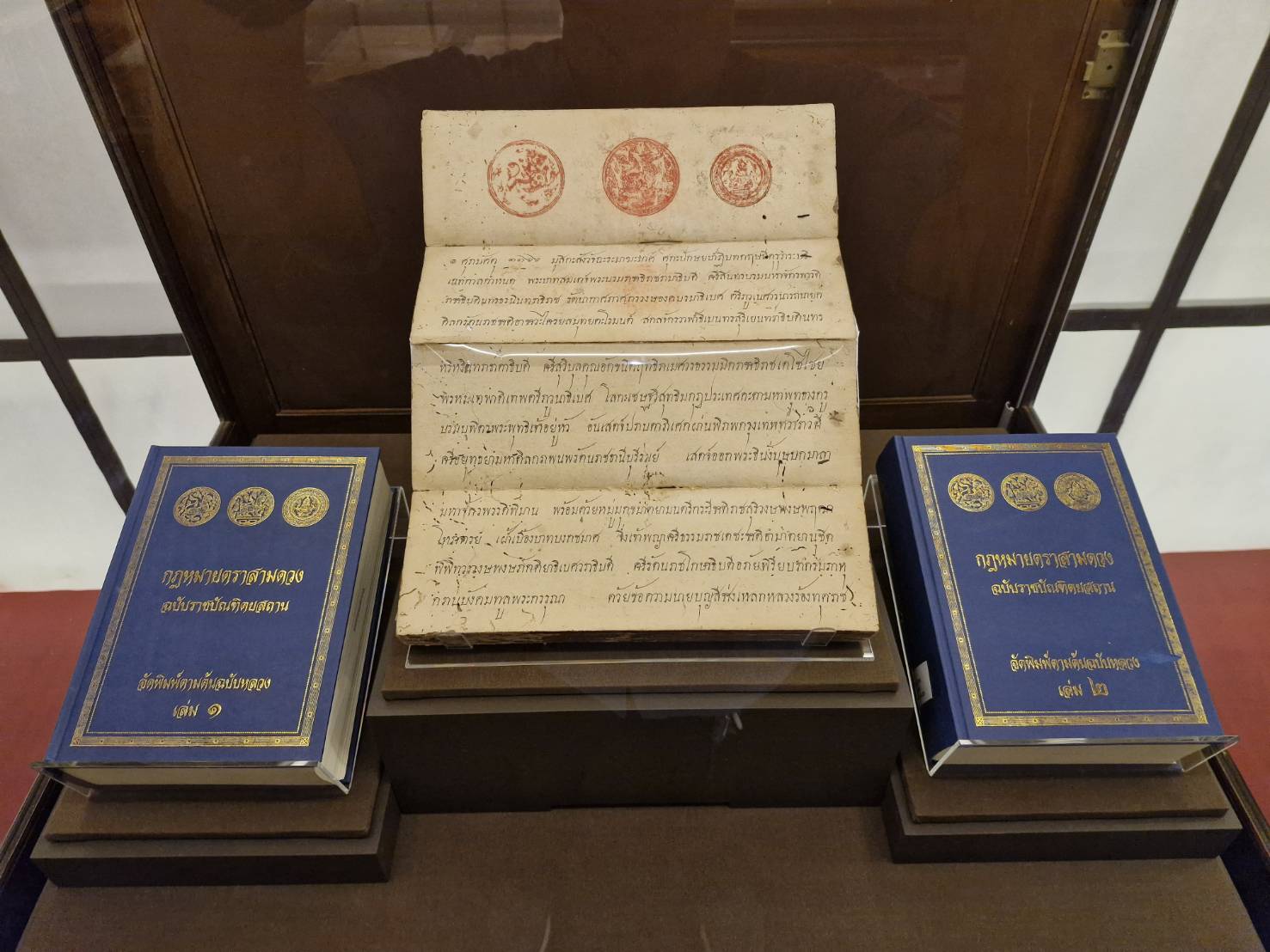 ๓. “นิติสารเมื่อเพรงกาล เล่าขานประวัติศาสตร์ไทย” นำเสนอเอกสารด้านกฎหมายและความ สัมพันธ์ระหว่างประเทศ อาทิ กฎหมายตราสามดวง สนธิสัญญาเบาว์ริ่ง เอกสารเกี่ยวกับการเลิกทาส