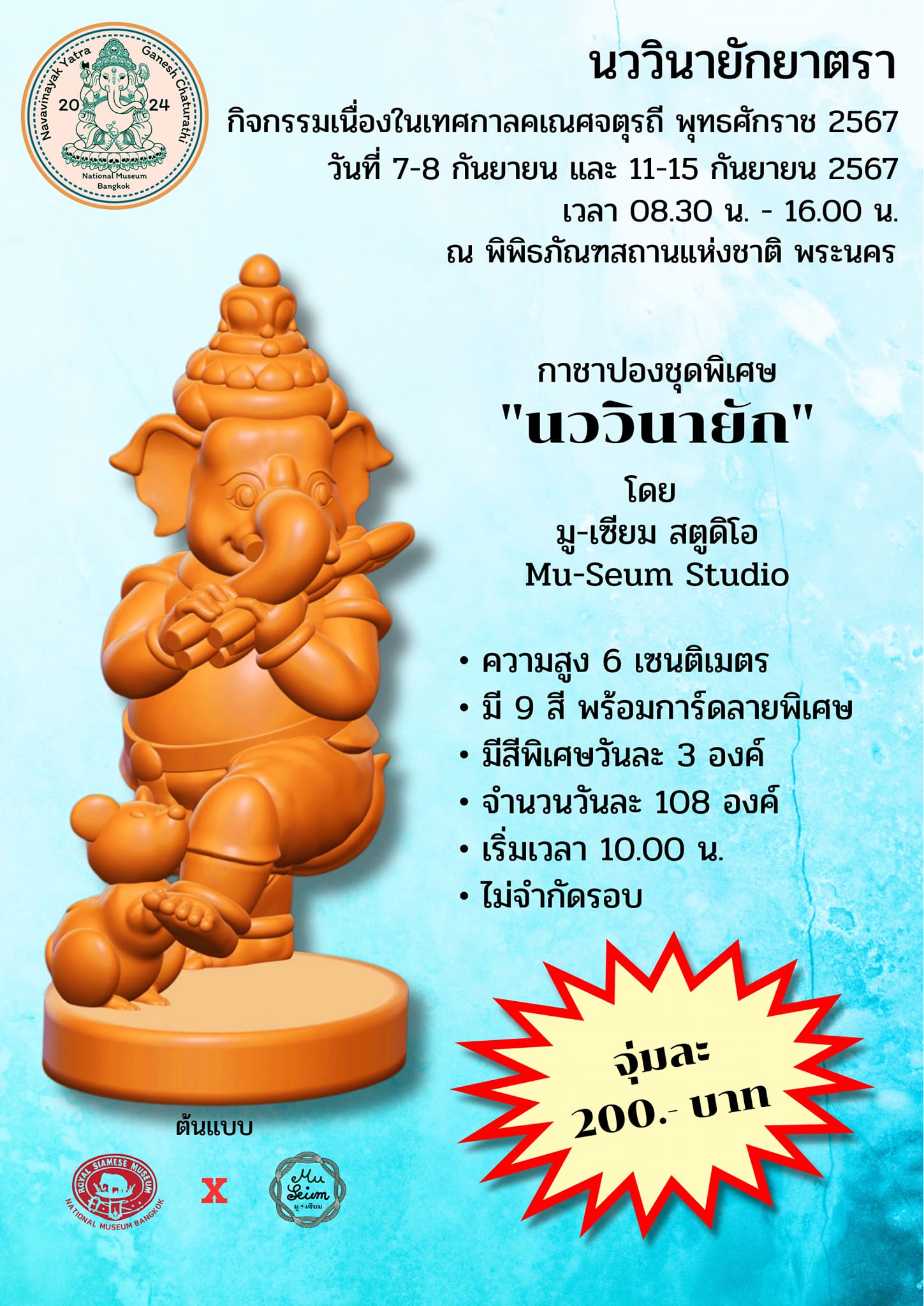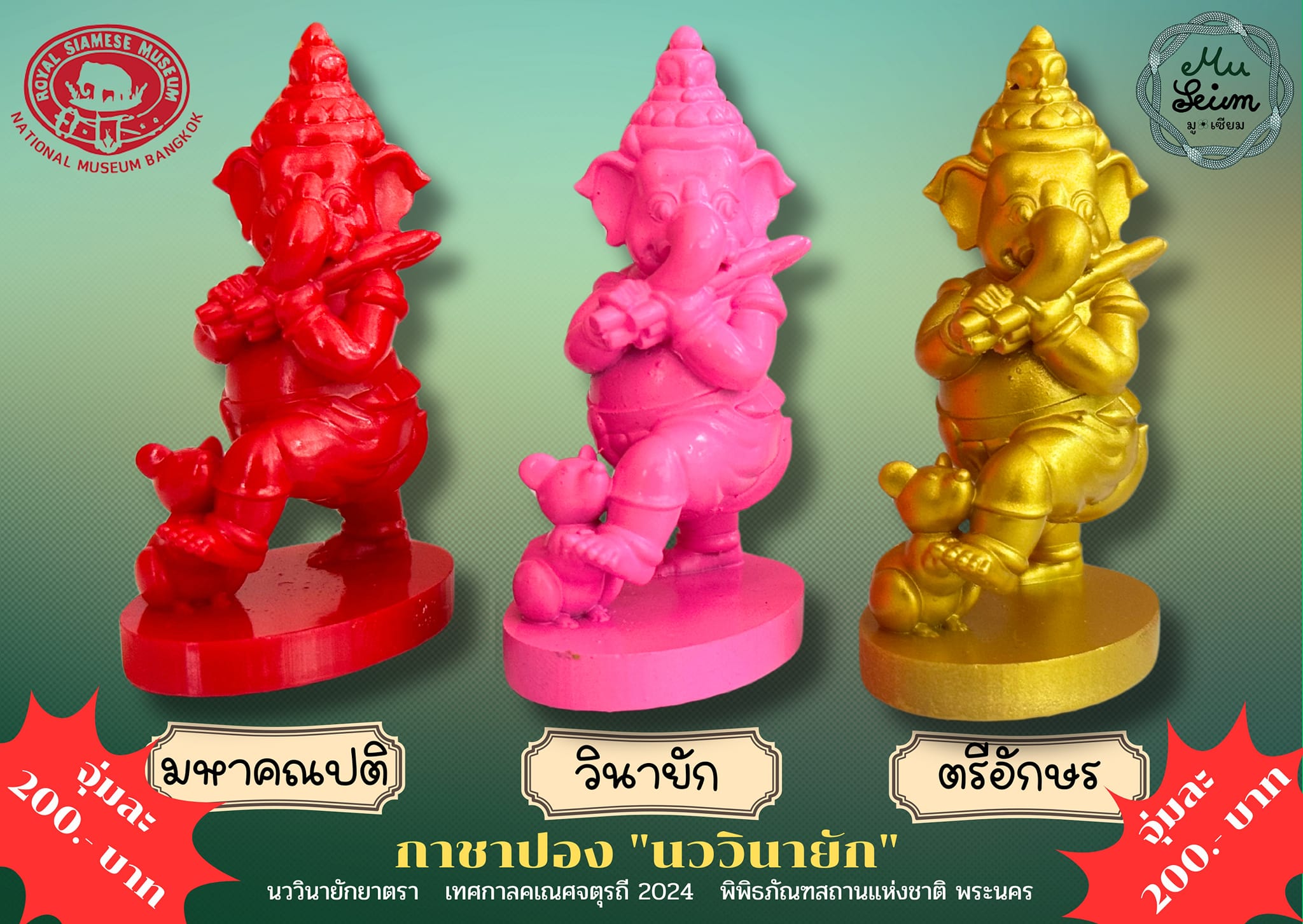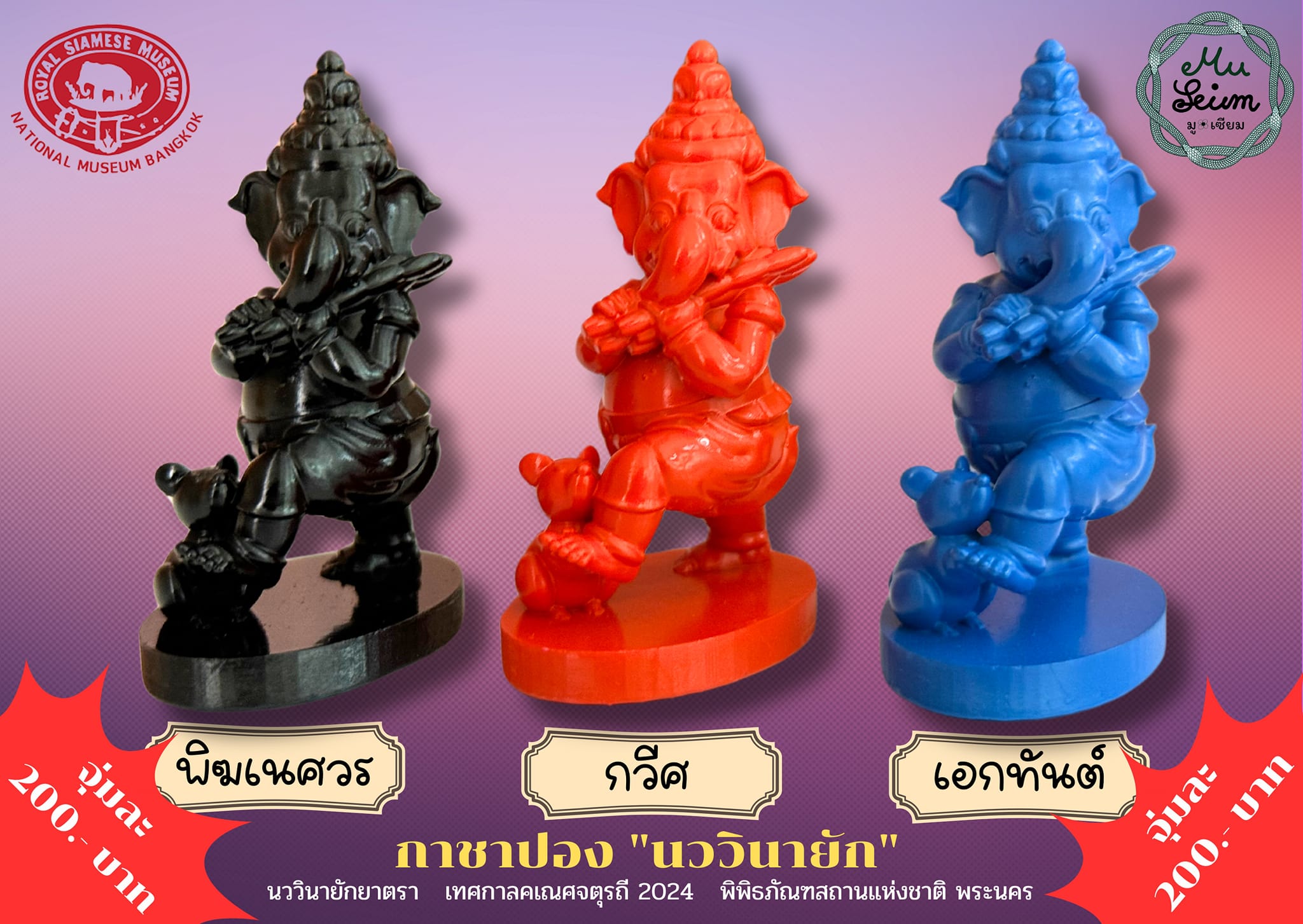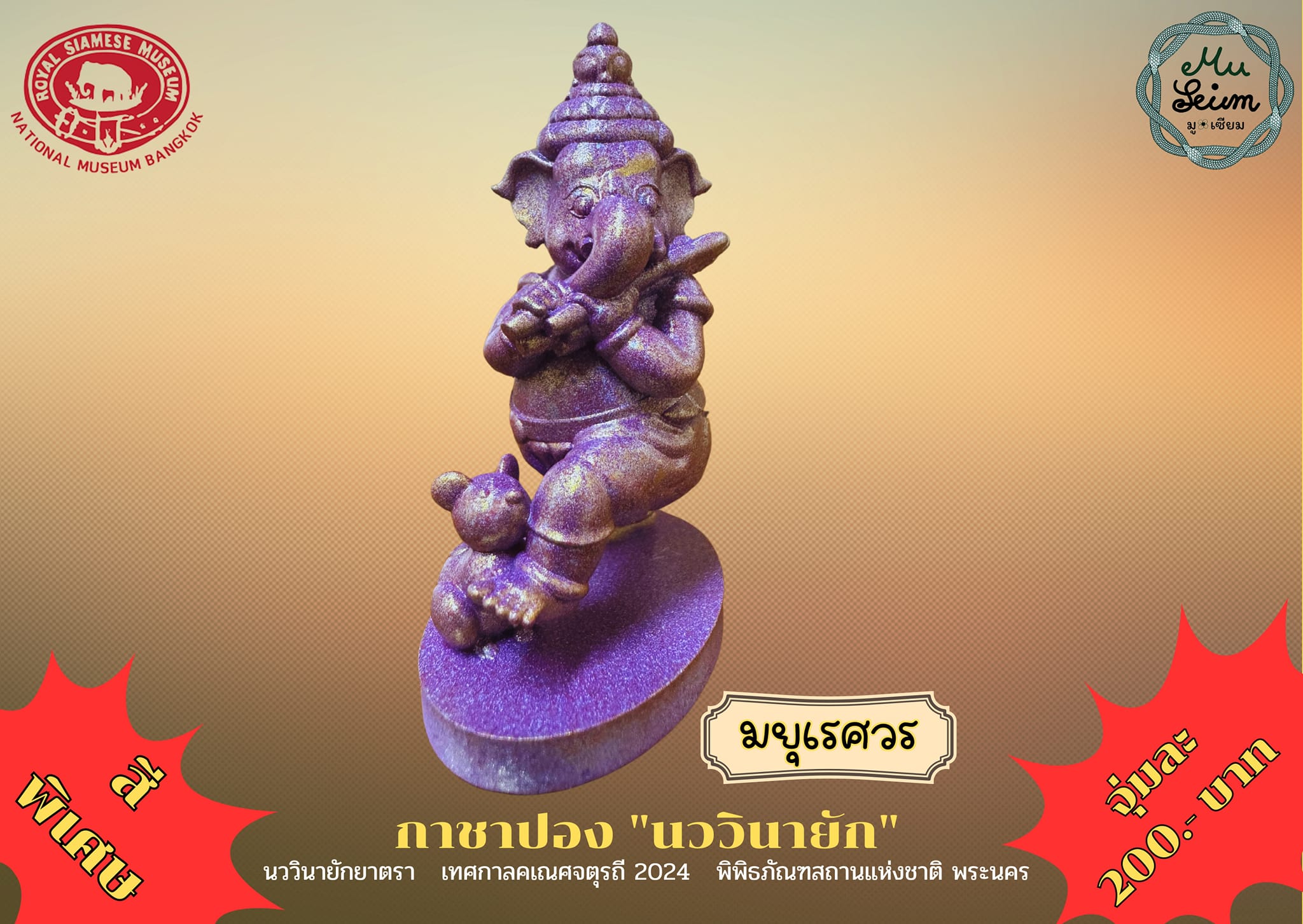 - กาชาปองชุดพิเศษ เนื่องในเทศกาลคเณศจตุรถี พุทธศักราช ๒๕๖๗ "นววินายัก" โดย มู-เซียม สตูดิโอ (Mu-Seum Studio) กาชาปองชุดนี้มีขนาดความสูง ๖ เซนติเมตร หนึ่งชุดมี ๙ องค์ ๙ สี แต่ละสีมีการ์ดลายพิเศษให้ด้วย จำนวนวันละ ๑๐๘ องค์ สีพิเศษ ๓ องค์/วัน พร้อมการ์ดลายสุดพิเศษ เริ่มเวลา ๑๐.๐๐ น. วันเสาร์ที่ ๗ กันยายน - วันอาทิตย์ที่ ๑๕ กันยายน ๒๕๖๗ ณ อาคารมหาสุรสิงหนาท (ไม่จำกัดรอบ จนกว่าของจะหมดในแต่ละวัน) ราคาจุ่มละ ๒๐๐ บาท