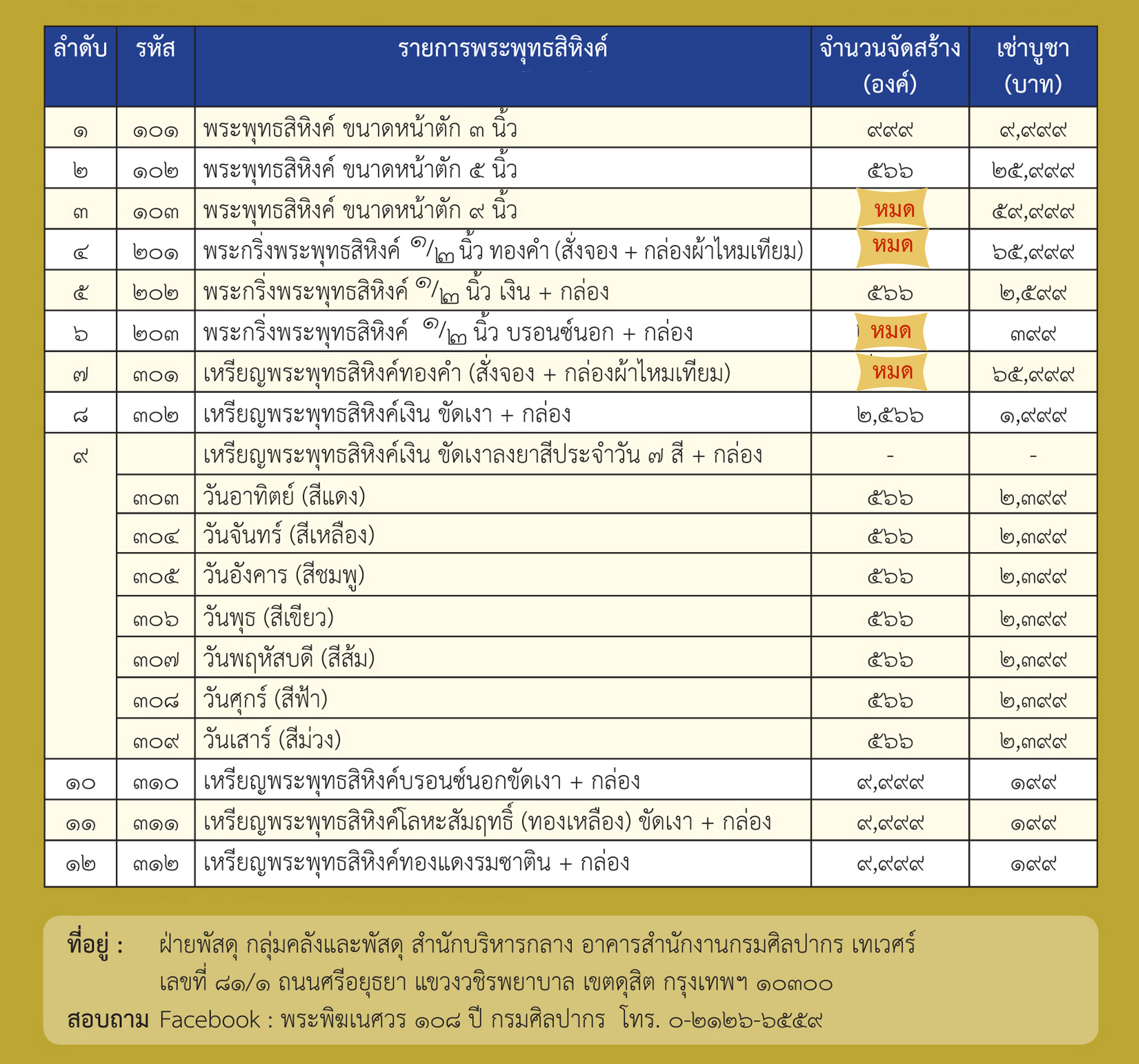 *หมายเหตุ : บางรายการอาจมีผู้ศรัทธาเช่าบูชาหมดแล้ว