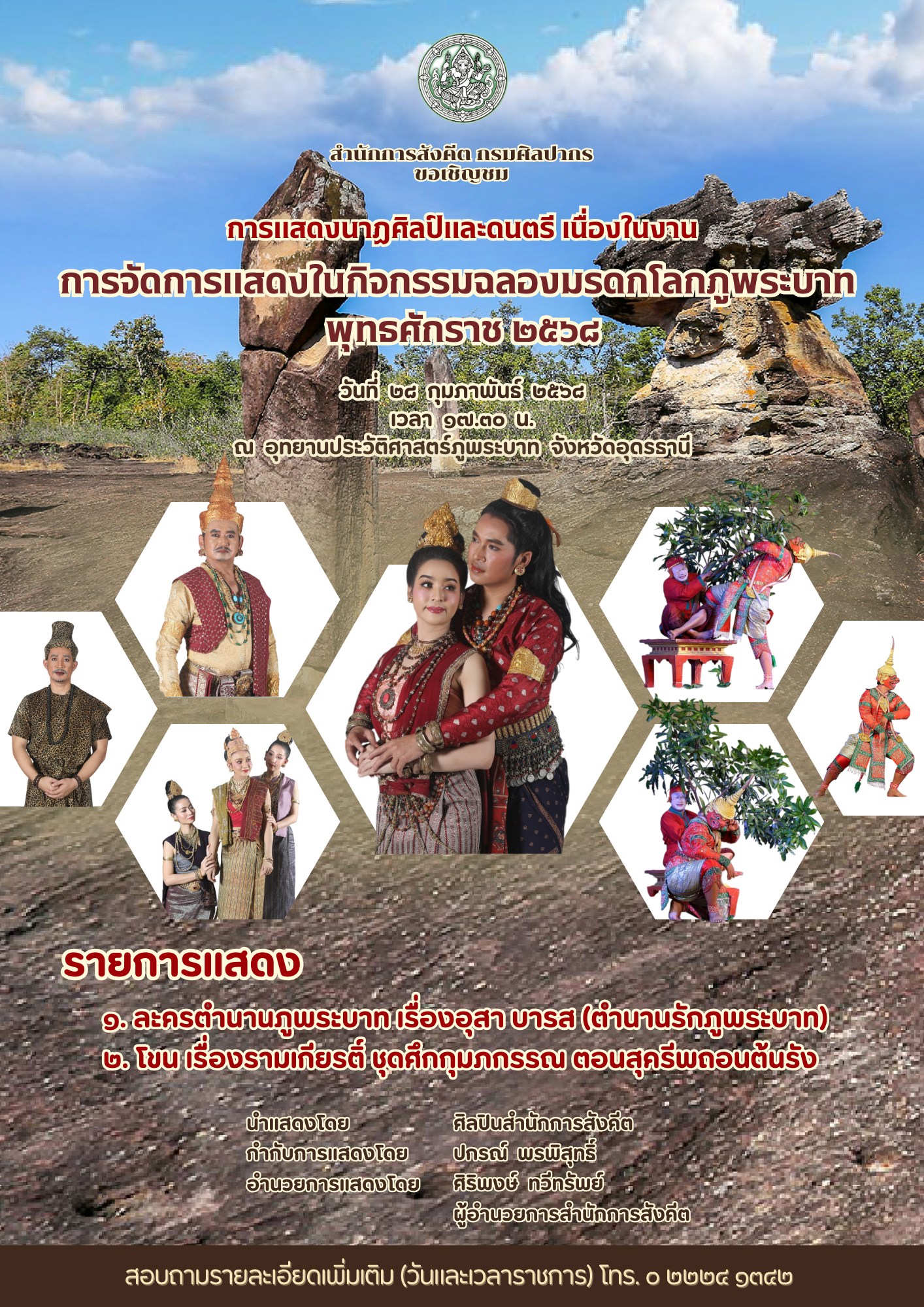 ขอเชิญชมการแสดงนาฏศิลป์และดนตรี เนื่องในงานการจัดการแสดงในกิจกรรมฉลองมรดกโลกภูพระบาท พุทธศักราช ๒๕๖๘