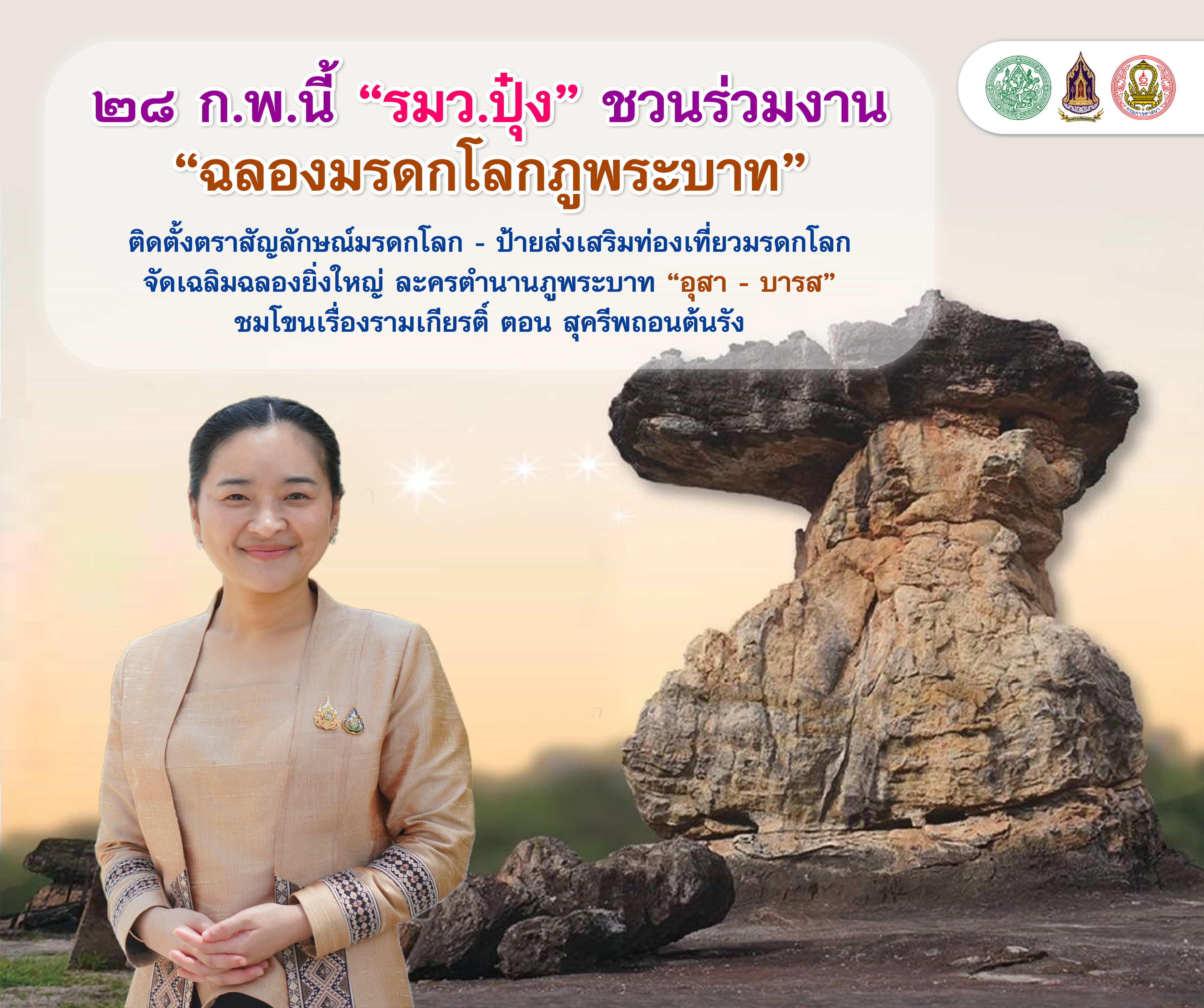 28 ก.พ.นี้ “รมว.สุดาวรรณ” ชวนร่วมงาน “ฉลองมรดกโลกภูพระบาท” ยูเนสโก ส่งมอบหนังสือรับรองขึ้นทะเบียนอย่างเป็นทางการ