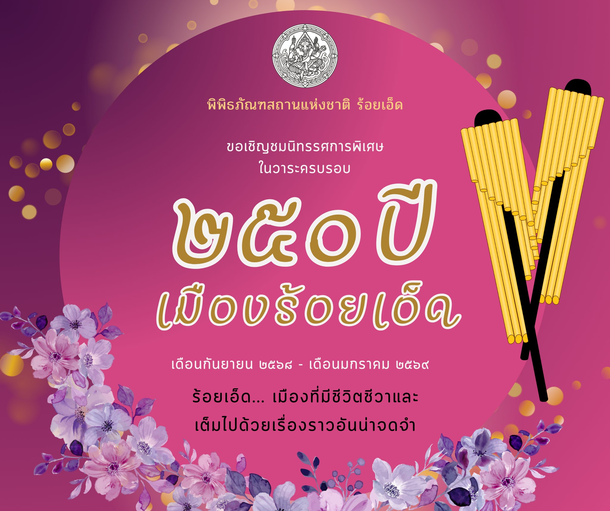 ขอเชิญชมนิทรรศการพิเศษ "250 ปี เมืองร้อยเอ็ด" ณ พิพิธภัณฑสถานแห่งชาติ ร้อยเอ็ด