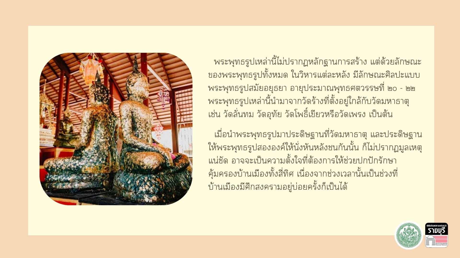 เรื่อง #พระนั่งหันหลังชนกันที่วัดมหาธาตุจังหวัดราชบุรี
