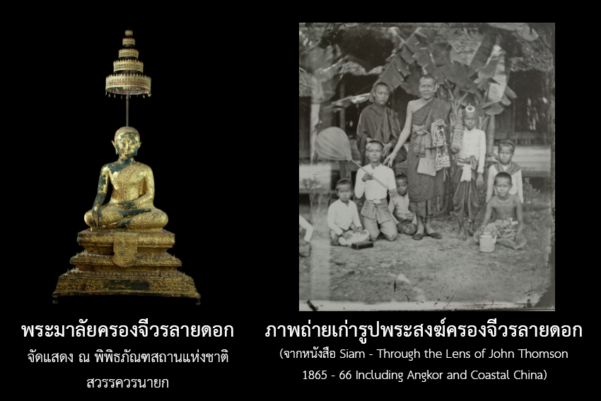 แม้ว่าการถวายจีวรลายดอกแด่พระสงฆ์จะลดลงในสมัยพระบาทสมเด็จพระจอมเกล้าเจ้าอยู่หัว (รัชกาลที่ ๔) จนหายไปในที่สุด ทว่ายังปรากฏการสร้างพระพุทธรูปหรือพระสาวกที่ครองจีวรลายดอกสืบต่อมาจนกลายเป็นอัตลักษณ์หนึ่งของศิลปกรรมสมัยรัตนโกสินทร์ที่ไม่พบในงานศิลปกรรมสมัยอื่นของไทย