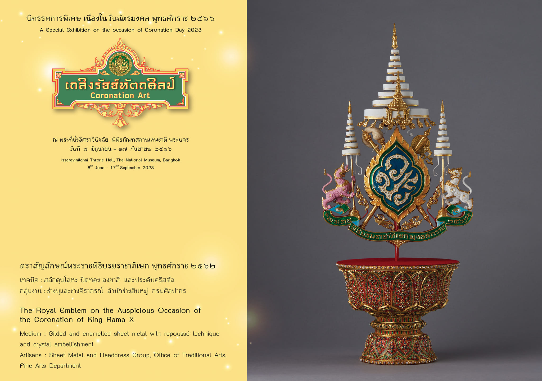 ผลงานศิลปกรรมจัดสร้างโดย สำนักช่างสิบหมู่ กรมศิลปากร จัดแสดงในนิทรรศการพิเศษ “เถลิงรัชช์หัตถศิลป์” ณ พระที่นั่งอิศราวินิจฉัย พิพิธภัณฑสถานแห่งชาติ พระนคร ระหว่างวันที่ ๙ มิถุนายน – ๑๗ กันยายน ๒๕๖๖ เวลา ๐๙.๐๐ – ๑๖.๐๐ น. วันพุธ วันอาทิตย์ (ปิดวันจันทร์ – วันอังคาร)