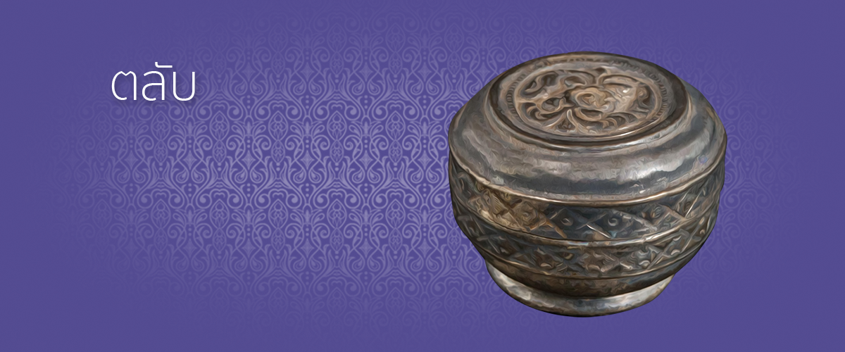 ลักษณะ : ตลับพร้อมฝาทรงกลมแบน ตัวตลับด้านนอกทำรูปทรงคล้ายถ้วยก้นมีเชิงด้านใน เมื่อดึงฝาออกมีลิ้นยื่นออกมาสำหรับใส่ฝ่า ฝาทรงกระบอกเตี้ย ด้านบนโค้งมนขึ้นเล็กน้อย ผิวหน้าด้านบนตลับทำแบนเรียบ ตกแต่งลวดลายดุนเป็นรูปดอกไม้, ที่ด้านข้างตัวและด้านข้างของฝาตกแต่งลายแถวกากบาท