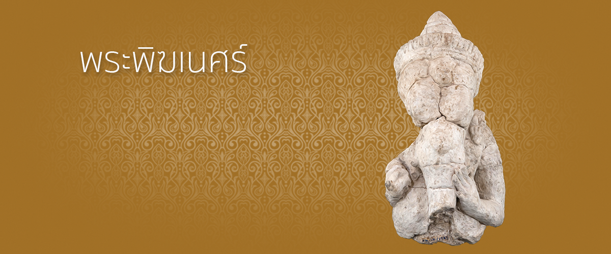 ลักษณะ : ประติมากรรมพระพิฆเนศร์ มีพระวรกายเป็นมนุษย์ พระเศียรเป็นช้าง สวมเทริดแบบกะบังหน้า มีมงกุฎทรงกรวย รายละเอียดพระพักตร์ไม่ชัดเจน พระหัตถ์ซ้ายยกขึ้นแตะงวง พระหัตถ์ขวาถือวัตถุอย่างหนึ่ง