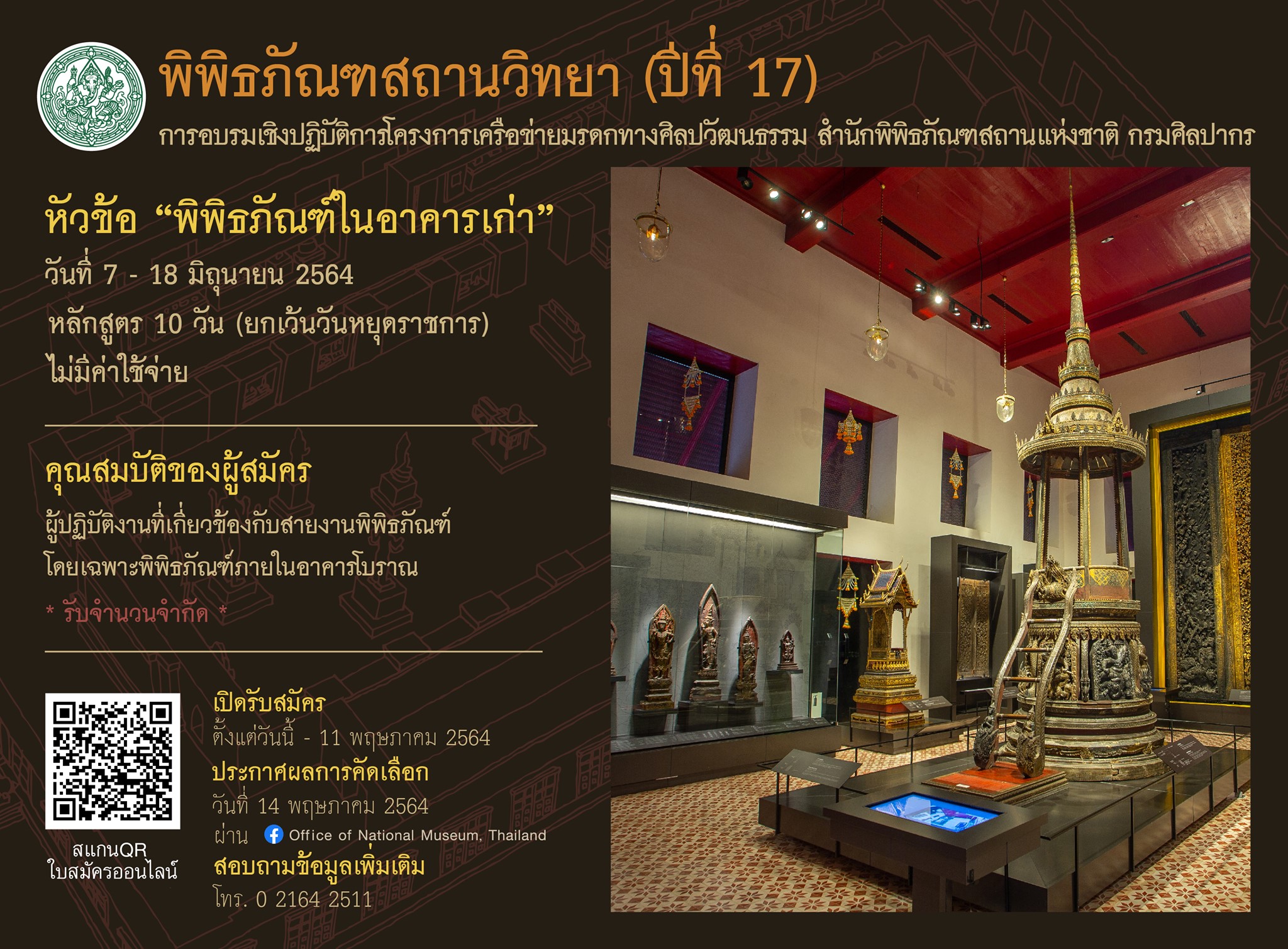 เปิดรับสมัครบุคลากรผู้ปฏิบัติงานด้านพิพิธภัณฑ์เข้าร่วมโครงการอบรมพิพิธภัณฑสถานวิทยา (ปีที่ 17)