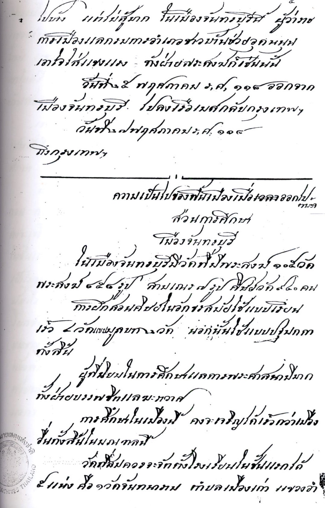 การจัดการพระศาสนาและการศึกษาในมณฑลจันทบุรี ร.ศ.๑๑๘
