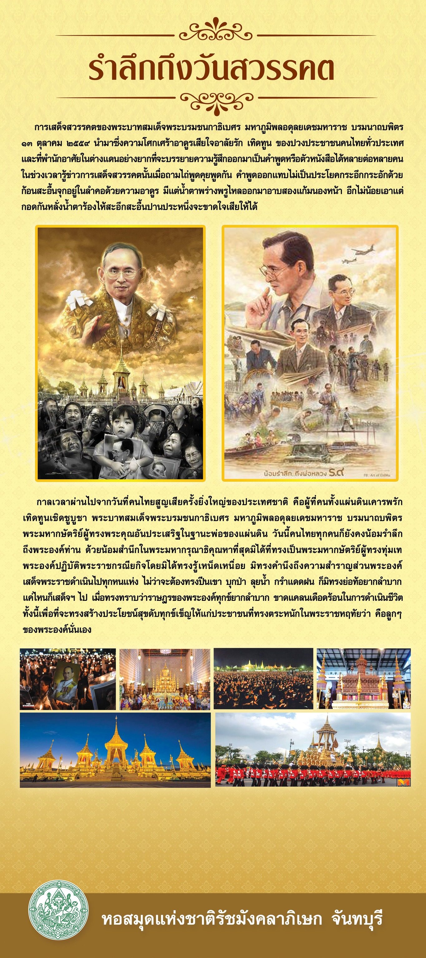 นิทรรศการเฉลิมพระเกียรติ "น้อมรำลึกในหลวง ร.๙ ธ สถิตในดวงใจ ไทยนิรันดร์"