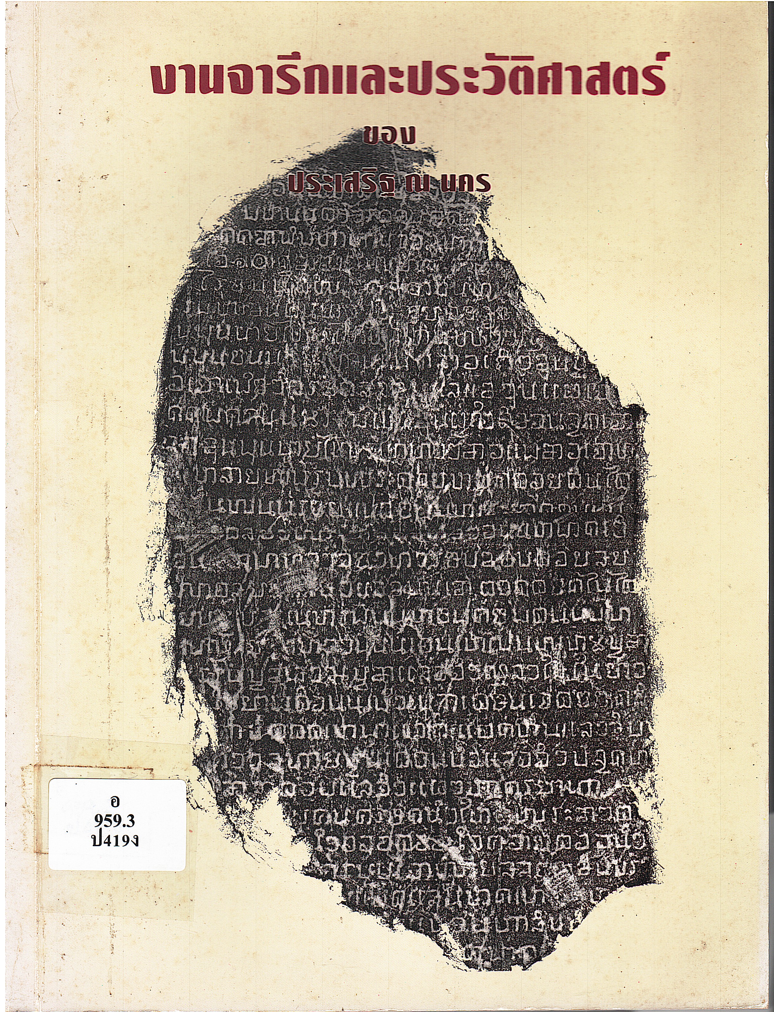 ประเสริฐ ณ นคร. งานจารึกและประวัติศาสตร์. นครปฐม: โรงพิมพ์ศูนย์ส่งเสริมและฝึกอบรมการเกษตรแห่งชาติ มหาวิทยาลัยเกษตรศาสตร์, 2534. 211 หน้า.