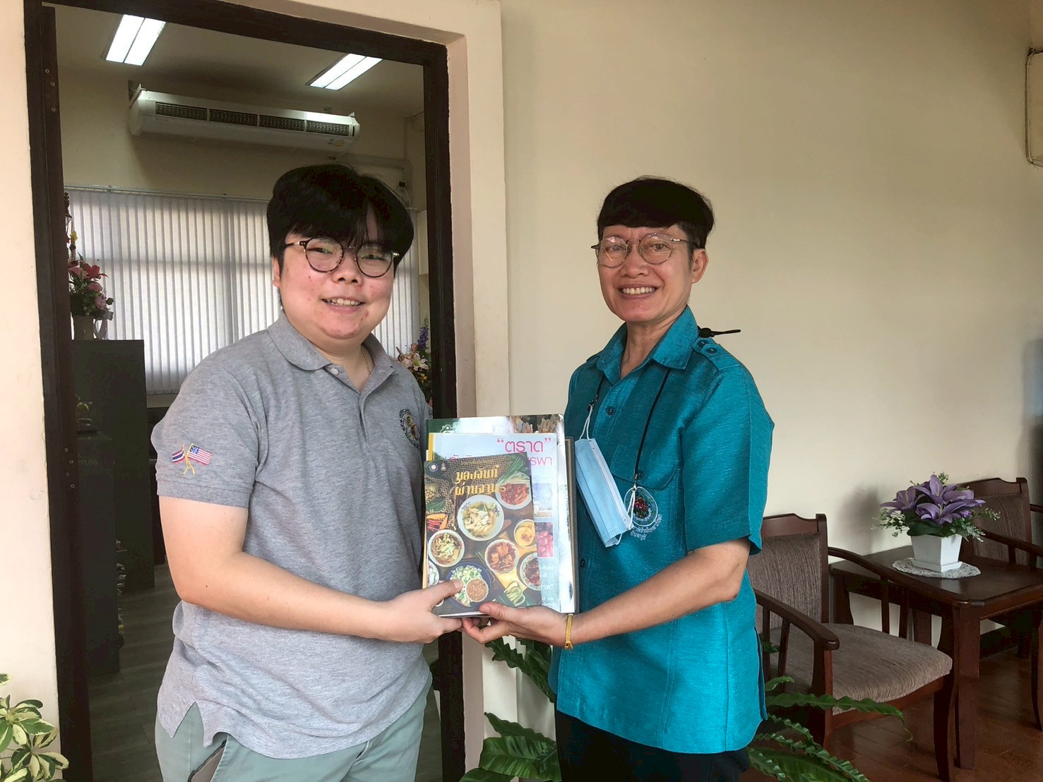 นางสาวเมษา ครุปิติ ผู้อำนวยการหอสมุดแห่งชาติรัชมังคลาภิเษก จันทบุรี ให้การต้อนรับคุณอภิลักษณ์ ภิญโญลักษณา บรรณารักษ์ สำนักงานหอสมุดรัฐสภาอเมริกัน สถานทูตอเมริกา ประจำประเทศไทย (Library of Congress Representative Office, Embassy of the United States of America)