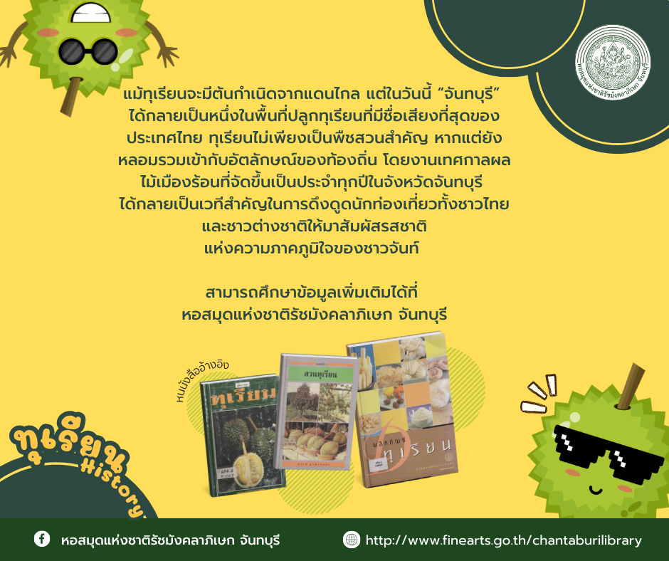 แม้ทุเรียนจะมีต้นกำเนิดอยู่ห่างไกลจากจันทบุรี แต่ด้วยสภาพภูมิประเทศที่อุดมสมบูรณ์และความตั้งใจของผู้คนในพื้นที่ ทุเรียนจึงสามารถเติบโตได้ดีและกลายเป็นผลไม้สำคัญของท้องถิ่น นับตั้งแต่ยุคเริ่มต้นของการทำสวน จนถึงปัจจุบันที่จันทบุรีเป็นหนึ่งในแหล่งผลิตทุเรียนคุณภาพของประเทศ เรื่องราวเหล่านี้สะท้อนให้เห็นถึงความรู้ ความพยายาม และการปรับตัวของชาวสวน ที่ช่วยกันยกระดับให้ทุเรียนเป็นผลไม้ที่มีคุณค่าทั้งในด้านเศรษฐกิจและวัฒนธรรมของจังหวัดอย่างแท้จริง