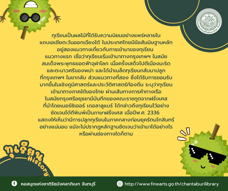 “ทุเรียน” ไม่ได้เป็นเพียงผลไม้เมืองร้อนที่มีเอกลักษณ์เฉพาะตัวด้านกลิ่นและรสชาติเท่านั้น หากแต่ยังเป็นผลไม้ที่มีเรื่องราวการเดินทางอันยาวนานและน่าสนใจ จากถิ่นกำเนิดในแถบหมู่เกาะบอร์เนียว และได้แพร่กระจายไปสู่ภูมิภาคต่างๆ ในเอเชียตะวันออกเฉียงใต้ รวมถึงประเทศไทย ซึ่งมีทั้งบันทึกและข้อสันนิษฐานหลากหลายเกี่ยวกับเส้นทางการเข้ามาของพืชผลชนิดนี้ในดินแดนสยาม