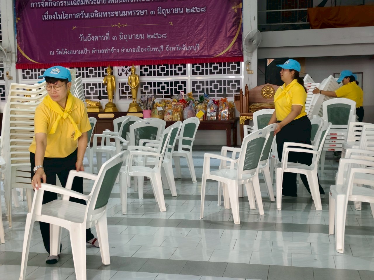 นางสาวเมษา ครุปิติ ผู้อำนวยการหอสมุดแห่งชาติรัชมังคลาภิเษก จันทบุรี ได้นำคณะเจ้าหน้าที่ข้าราชการของหน่วยงาน เข้าร่วมกิจกรรมจิตอาสาบำเพ็ญสาธารณประโยชน์เฉลิมพระเกียรติสมเด็จพระเจ้าน้องนางเธอ เจ้าฟ้าจุฬาภรณวลัยลักษณ์ อัครราชกุมารี กรมพระศรีสวางควัฒน วรขัตติยราชนารี เนื่องในโอกาสวันคล้ายวันประสูติ ๔ กรกฎาคม ๒๕๖๘ ร่วมกับสำนักงานวัฒนธรรมจังหวัดจันทบุรี โดยมีนางมานัสศรี ตันไล้ วัฒนธรรมจังหวัดจันทบุรี เป็นประธานในพิธี ณ วัดโค้งสนามเป้า อำเภอเมือง จังหวัดจันทบุรี