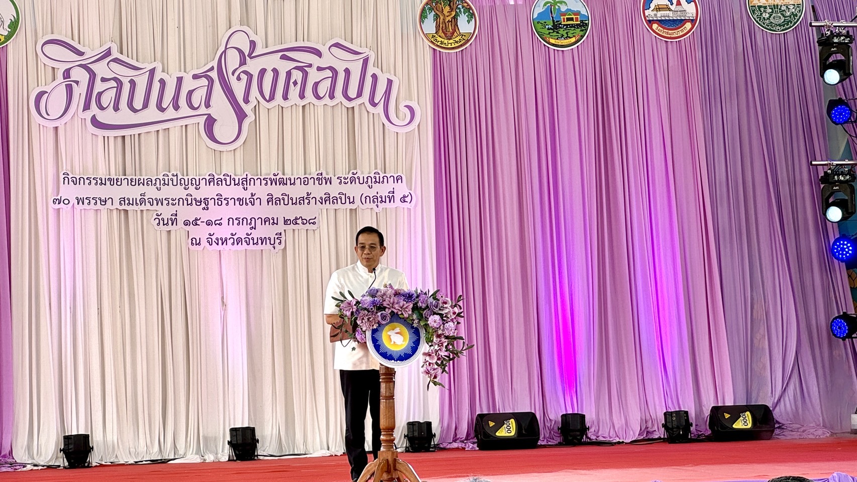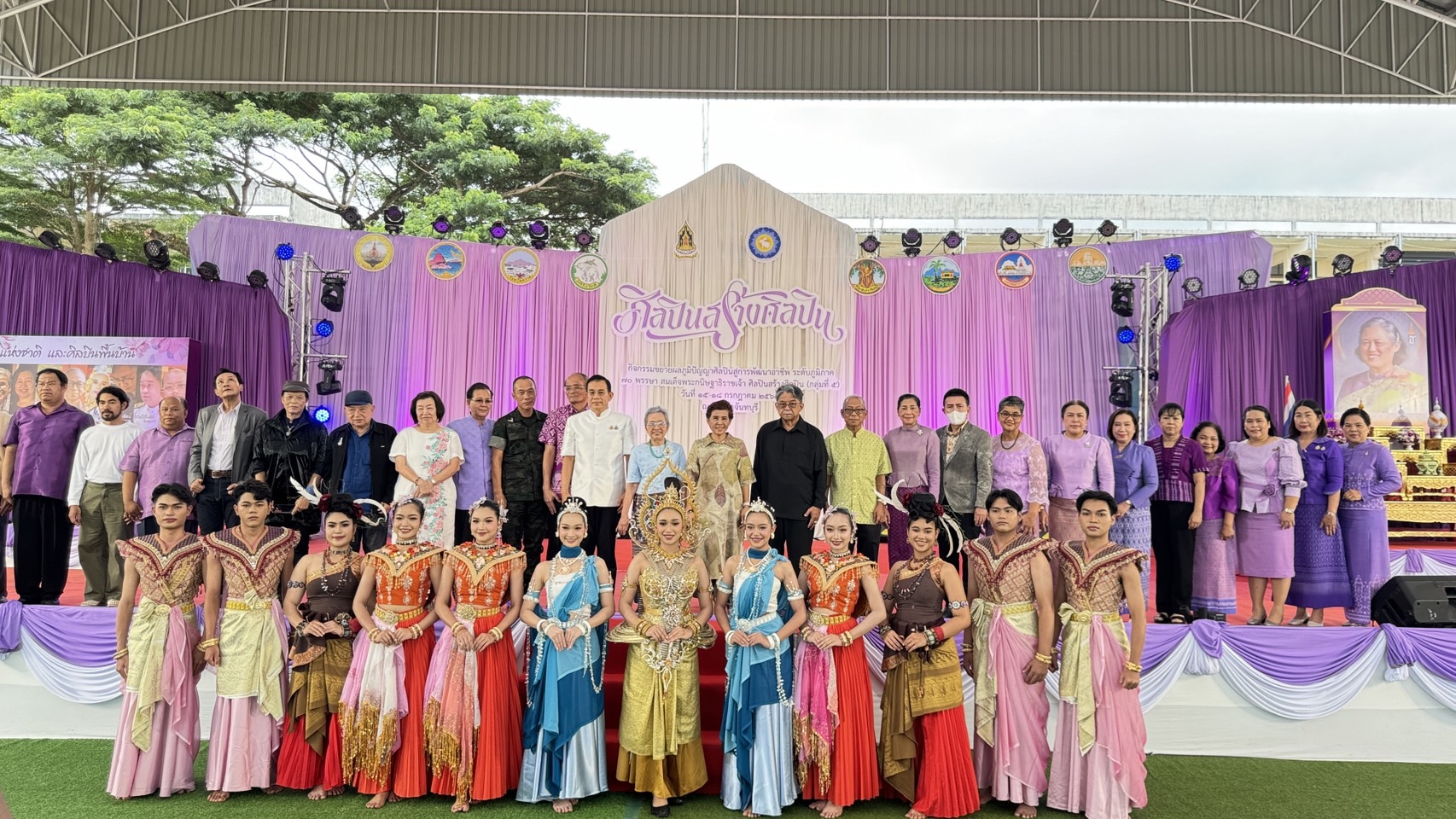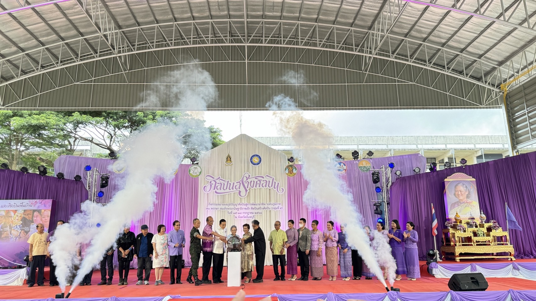 วันที่ 16 กรกฎาคม 2568 — นางสาวเมษา ครุปิติ ผู้อำนวยการหอสมุดแห่งชาติรัชมังคลาภิเษก จันทบุรี ได้นำคณะเจ้าหน้าที่ข้าราชการของหน่วยงาน เข้าร่วมพิธีเปิดงาน กิจกรรมขยายผลภูมิปัญญาศิลปินสู่การพัฒนาอาชีพ ระดับภูมิภาค 70 พรรษา สมเด็จพระกนิษฐาธิราชเจ้า ศิลปินสร้างศิลปิน (กลุ่มที่ ๕) โดยมี นางศศิฑอณร์ สุวรรณมณี หัวหน้าผู้ตรวจราชการกระทรวงวัฒนธรรม เป็นประธานในพิธี ณ อาคารโดมเวทีสังคีตศาลาบูรพาภิรมย์ วิทยาลัยนาฏศิลปจันทบุรี จังหวัดจันทบุรี