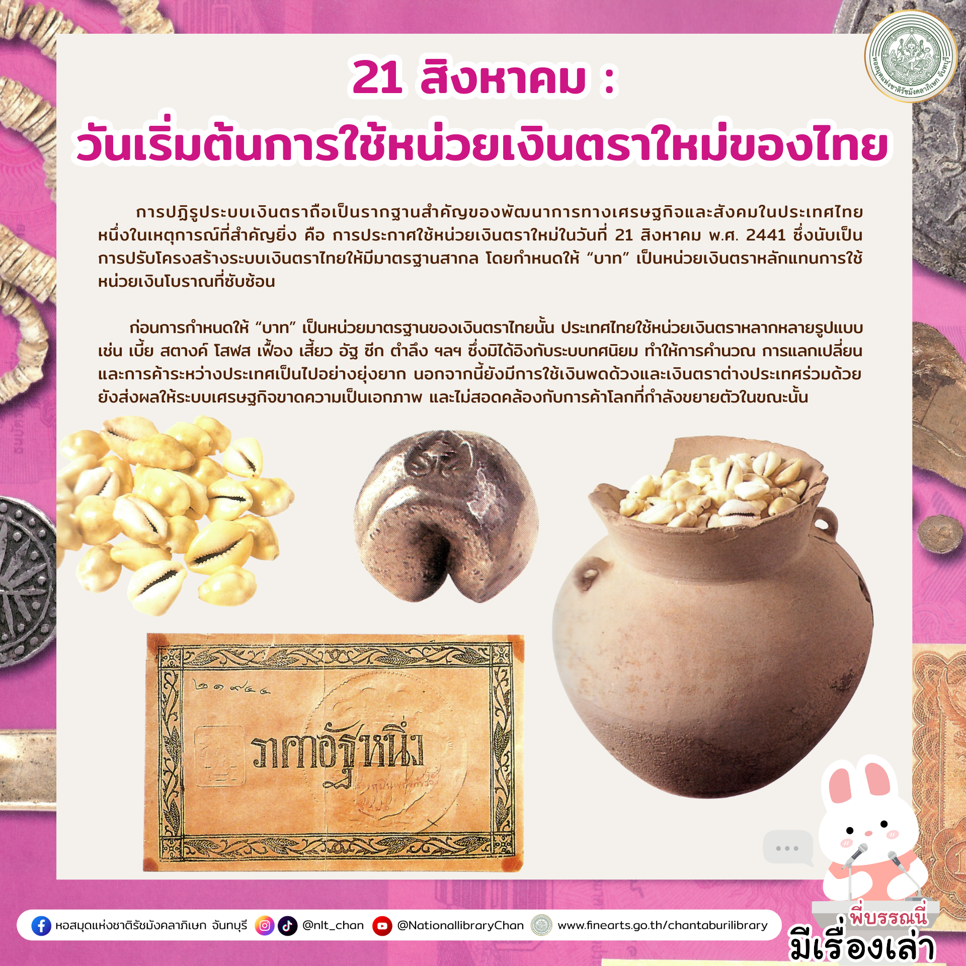 การปฏิรูประบบเงินตราถือเป็นรากฐานสำคัญของพัฒนาการทางเศรษฐกิจและสังคมในประเทศไทย หนึ่งในเหตุการณ์ที่สำคัญยิ่ง คือ การประกาศใช้หน่วยเงินตราใหม่ในวันที่ 21 สิงหาคม พ.ศ. 2441 ซึ่งนับเป็นการปรับโครงสร้างระบบเงินตราไทยให้มีมาตรฐานสากล โดยกำหนดให้ “บาท” เป็นหน่วยเงินตราหลักแทนการใช้หน่วยเงินโบราณที่ซับซ้อน