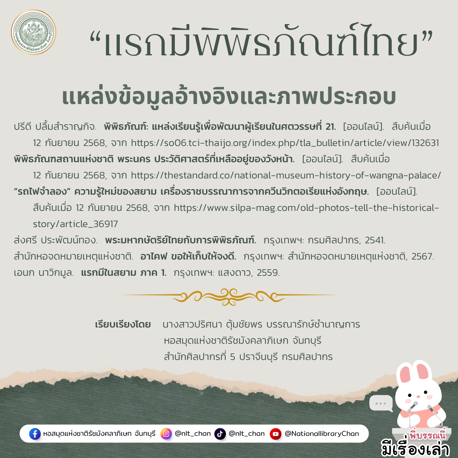 ปรีดี ปลื้มสำราญกิจ. พิพิธภัณฑ์: แหล่งเรียนรู้เพื่อพัฒนาผู้เรียนในศตวรรษที่ 21. [ออนไลน์]. สืบค้นเมื่อ 12 กันยายน 2568, จาก https://so06.tci-