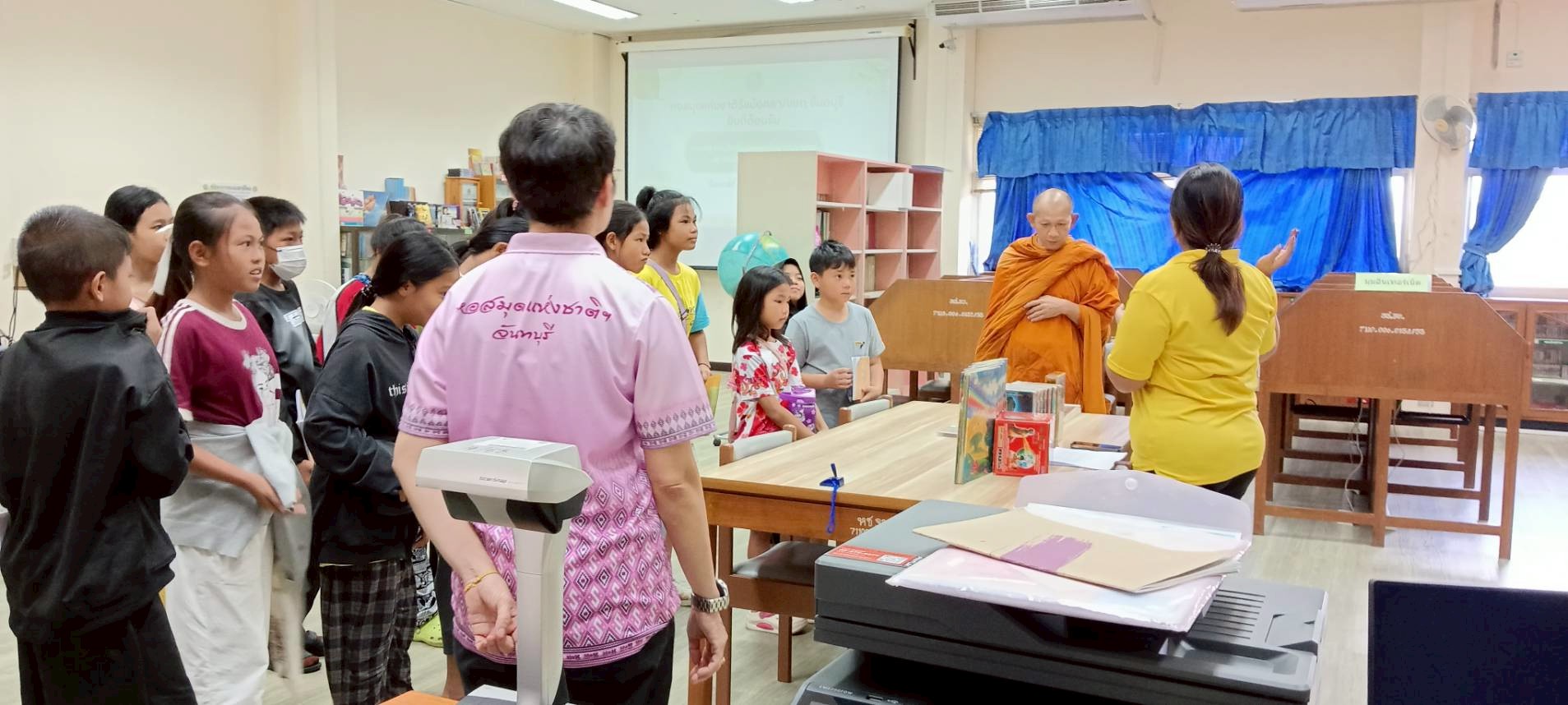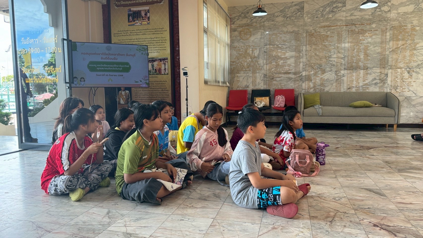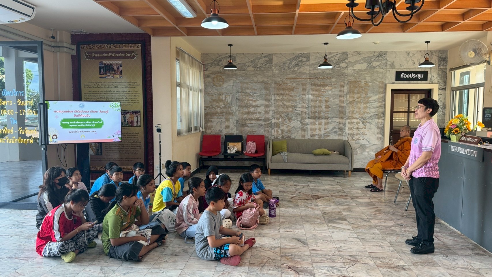 นักเรียนธรรมะศึกษาวันอาทิตย์จากพุทธสมาคม จ.จันทบุรี เข้าเยี่ยมชมหอสมุดแห่งชาติรัชมังคลาภิเษก จันทบุรี