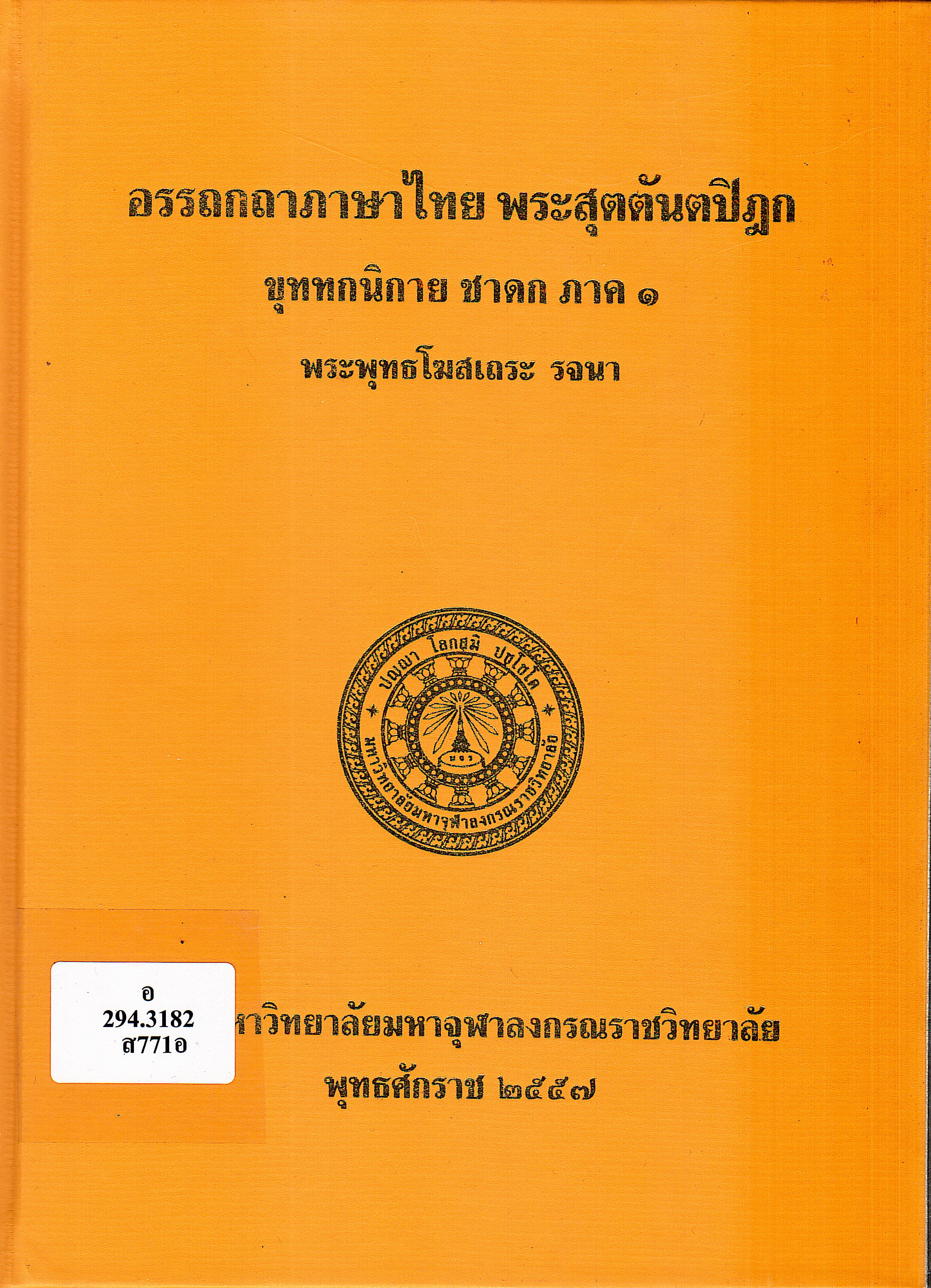 สุตตันตปิฎก ขุททกนิกาย. อรรถกถาภาษาไทย พระสุตตันตปิฎก ขุททกนิกาย ชาดก ภาค 1 : ฉบับมหาวิทยาลัยจุฬา