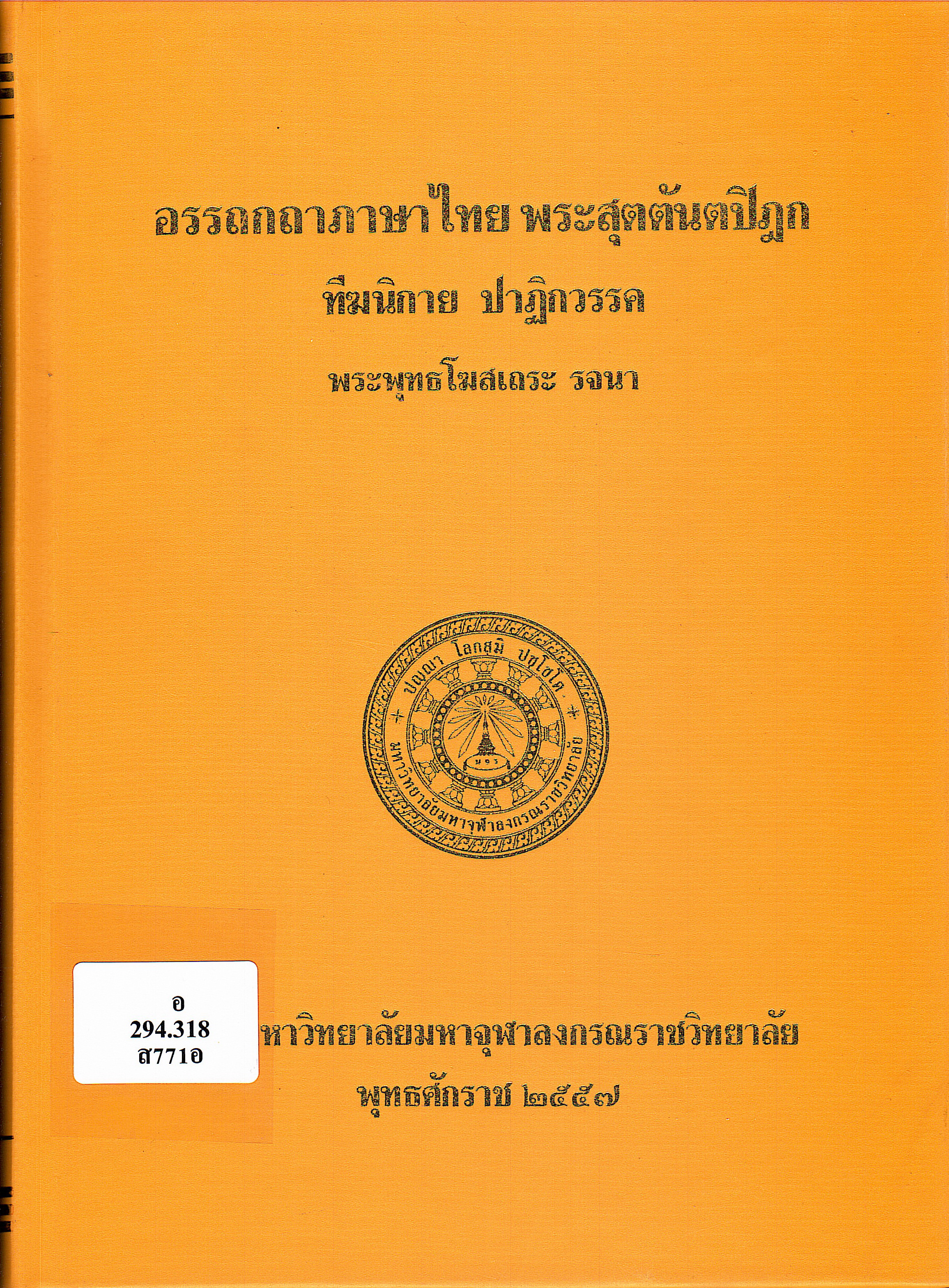 สุตตันตปิฎก ทีฆนิกาย. อรรถกถาภาษาไทย พระสุตตันตปิฎก ทีฆนิกาย ปาฏิกวรรค : ฉบับมหาวิทยาลัยมหาจุฬาลงกรณราชวิทยาลัย. พระนครศรีอยุธยา: โรงพิมพ์มหาจุฬาลงกรณราชวิทยาลัย, 2557.