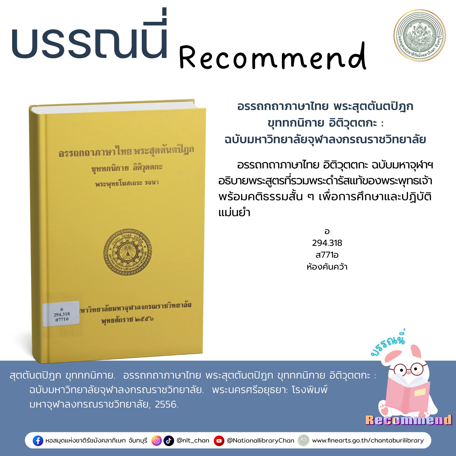 สุตตันตปิฎก ขุททกนิกาย. อรรถกถาภาษาไทย พระสุตตันตปิฎก ขุททกนิกาย อิติวุตตกะ : ฉบับมหาวิทยาลัยจุฬาลงกรณราชวิทยาลัย. พระนครศรีอยุธยา: โรงพิมพ์มหาวิทยาลัยมหาจุฬาลงกรณราชวิทยาลัย, 2556.