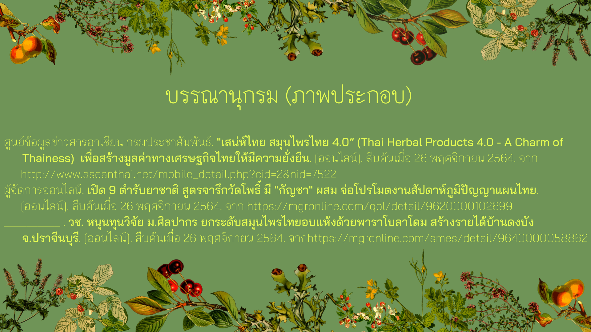 องค์ความจากหอสมุดแห่งชาติรัชมังคลาภิเษก เชียงใหม่ เรื่อง “ยาแผนไทย” : กรรมวิธีการแปรสภาพและเก็บสมุนไพร ตลอดจนการเตรียมเครื่องยาในการ ผลิตยาสมุนไพรไทยอย่างถูกวิธี