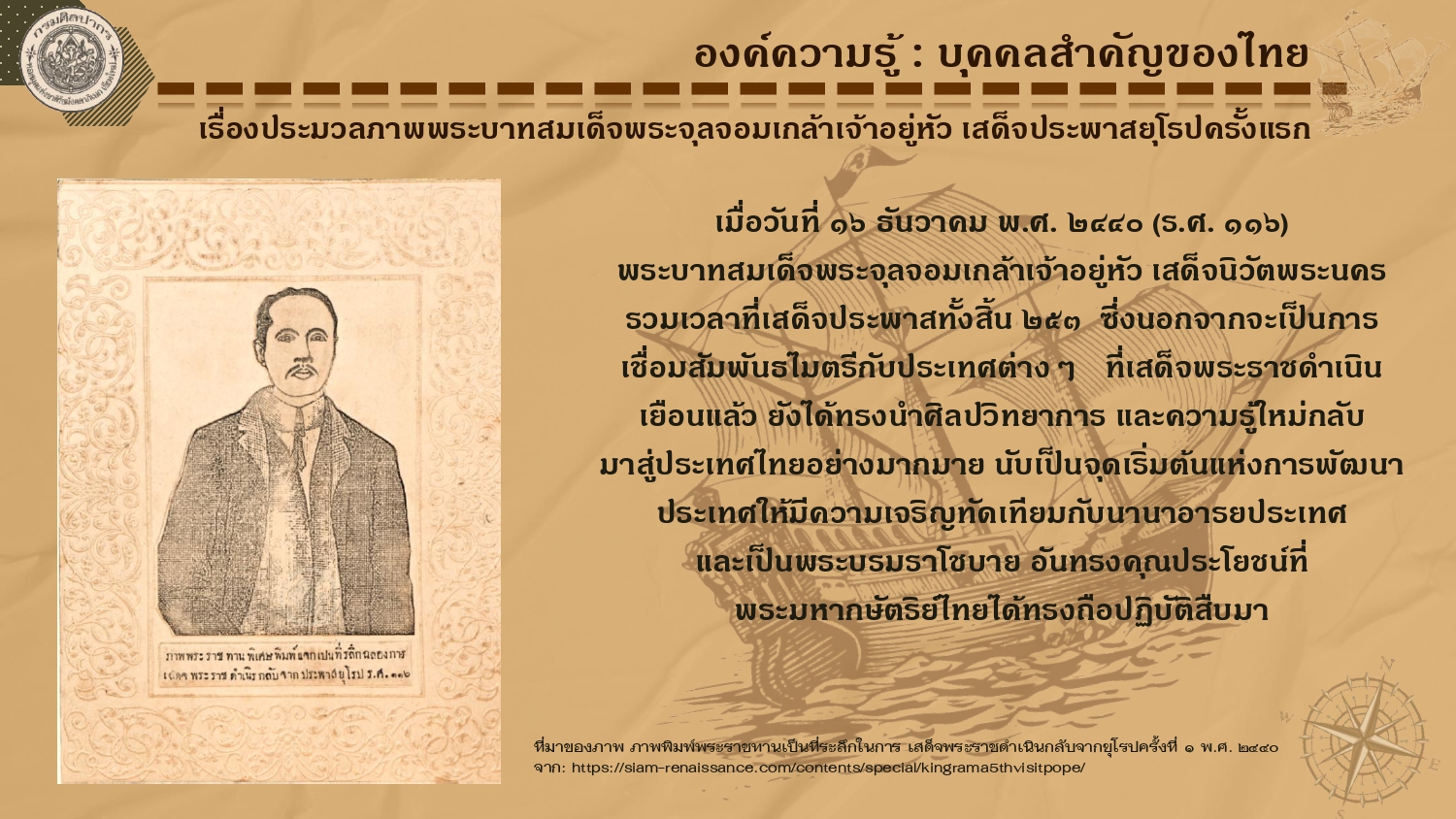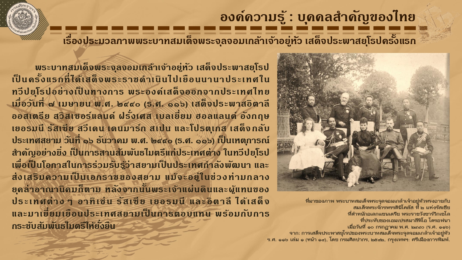Talk 'True' History. การเสด็จประพาสยุโรป ของรัชกาลที่ ๕ ภารกิจในการประกาศความเป็นอิสระและเอกราชของสยาม. [ออนไลน์]. สืบค้นเมื่อ ๒๙ เมษายน ๒๕๖๘,