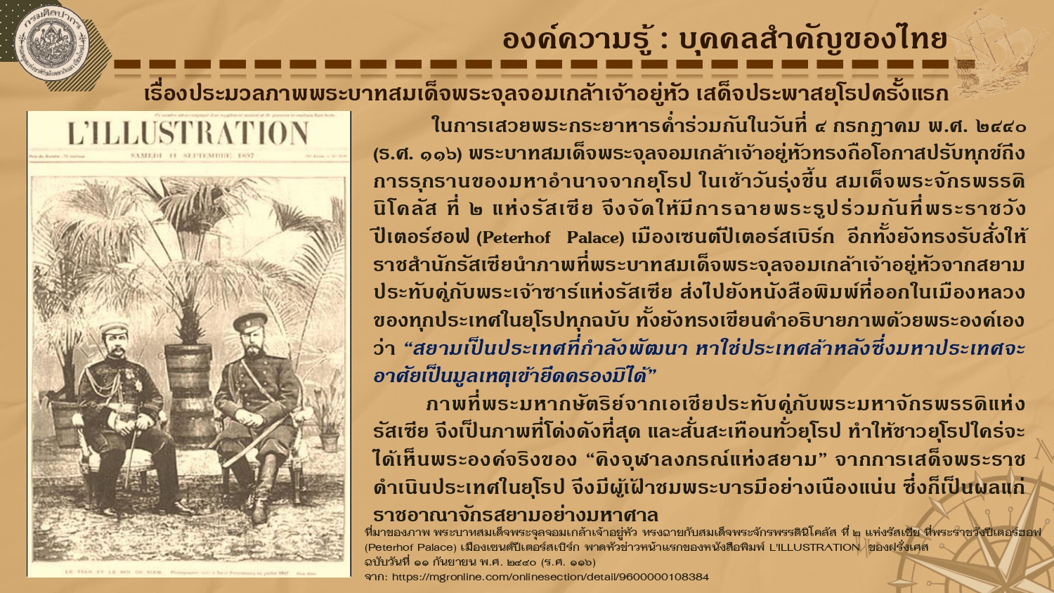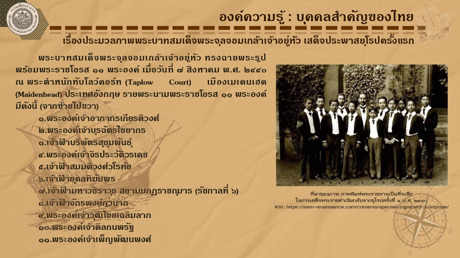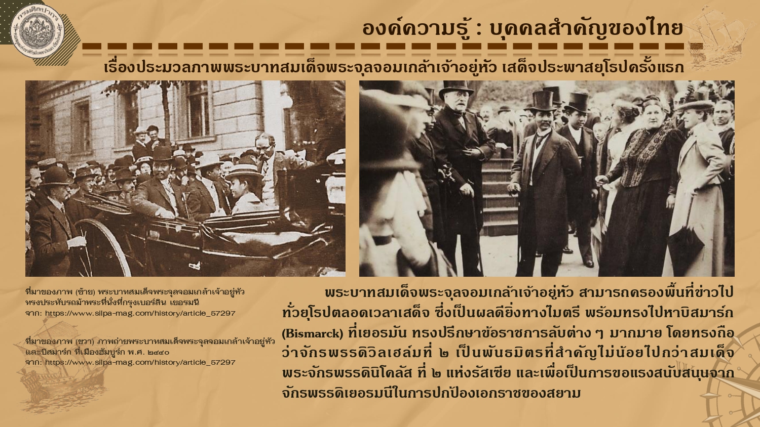 Talk 'True' History. การเสด็จประพาสยุโรป ของรัชกาลที่ ๕ ภารกิจในการประกาศความเป็นอิสระและเอกราชของสยาม. [ออนไลน์]. สืบค้นเมื่อ ๒๙ เมษายน ๒๕๖๘,
