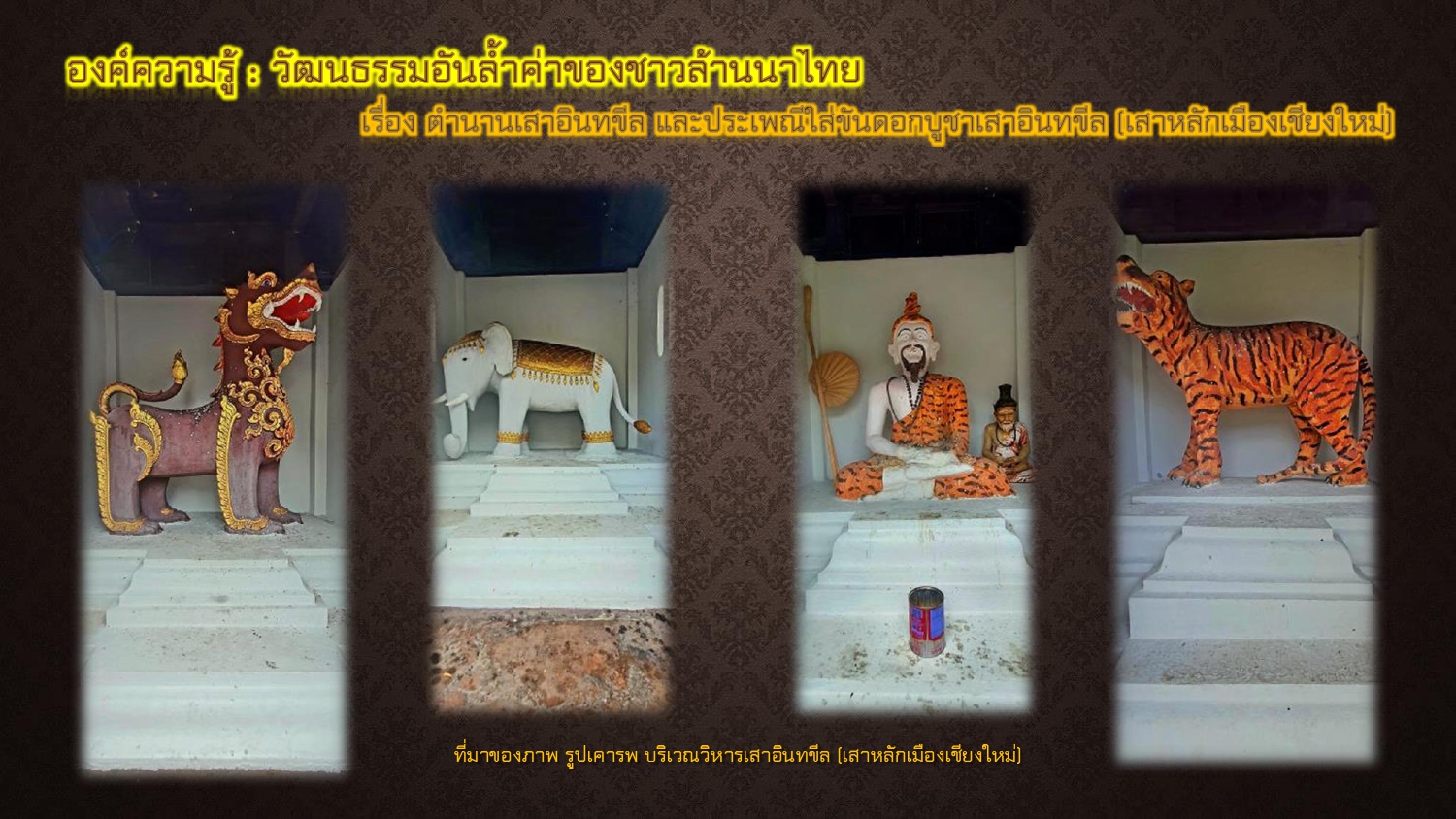 สนั่น ธรรมธิ. ประเพณีบูชาเสาอินทขีล. [ออนไลน์]. สืบค้นเมื่อ ๒๐ พฤษภาคม ๒๕๖๘, จาก: https://accl.cmu.ac.th/Knowledge/details/2637, ๒๕๖๕.