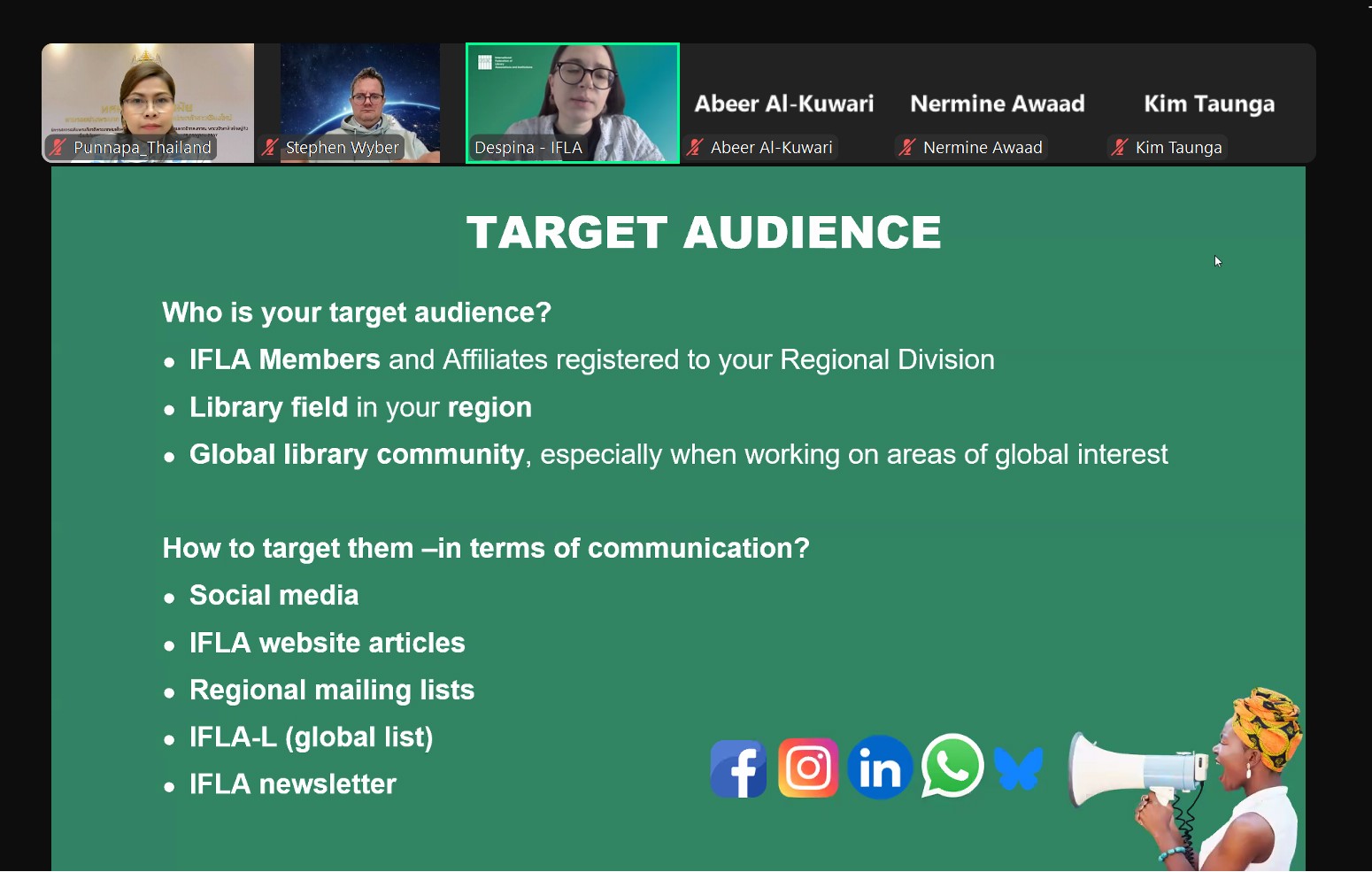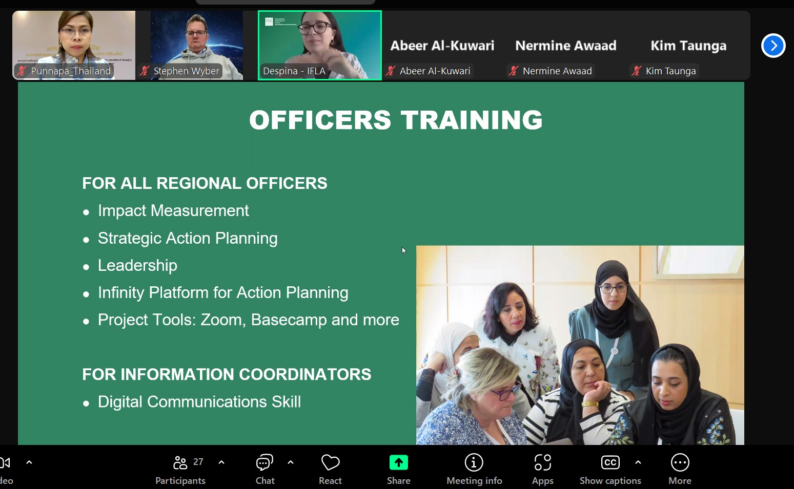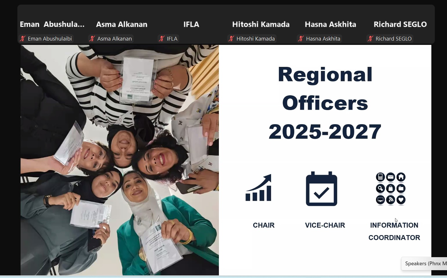 Miss Punnapa Suksakorn Director, Ratchamangklaphisek National Library Chiang Mai, Thailand, IFLA Asia – Oceania Reginal Division Committee 2025 – 2027 attended the online meeting