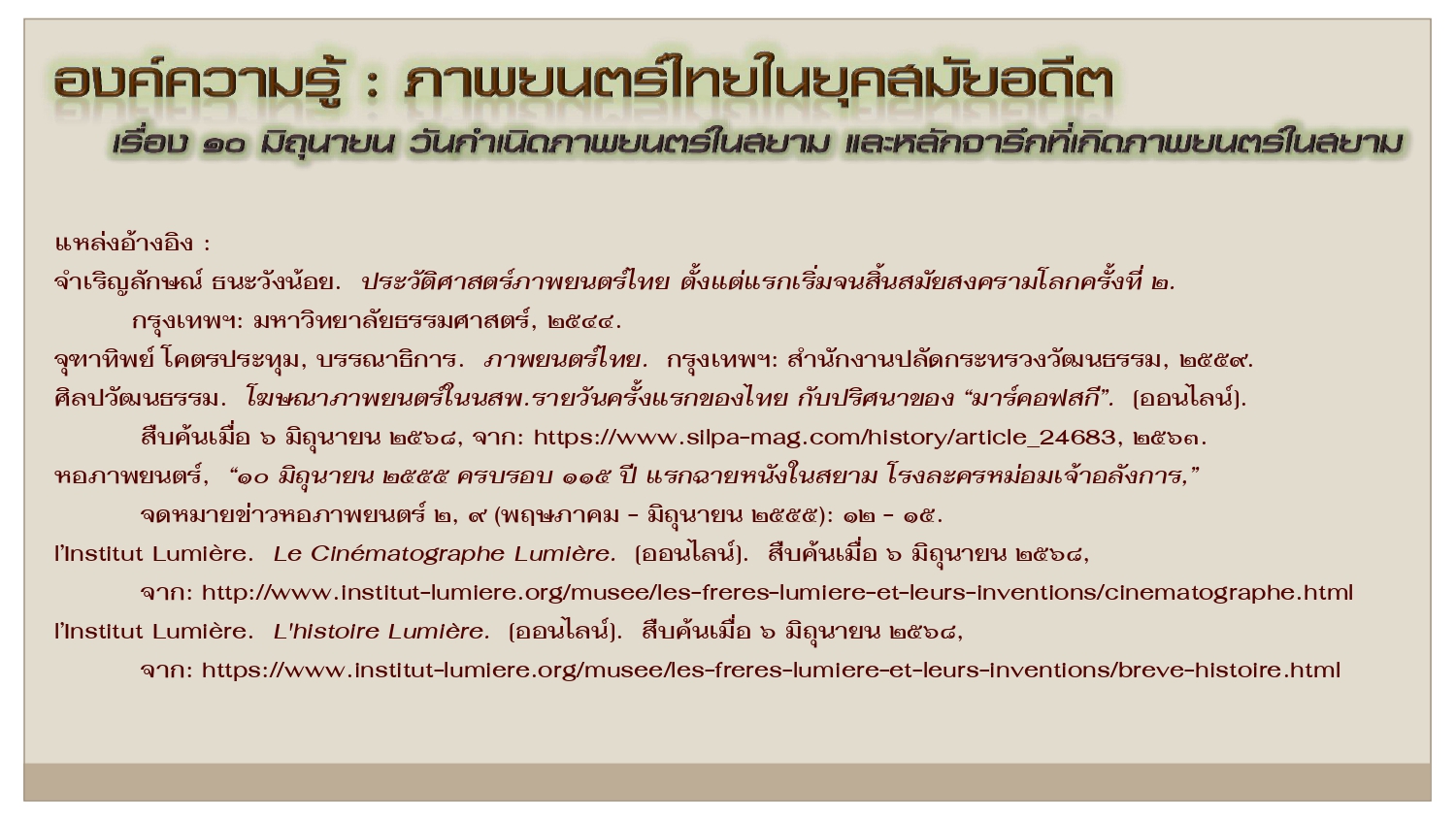 l’Institut Lumière. Le Cinématographe Lumière. [ออนไลน์]. สืบค้นเมื่อ ๖ มิถุนายน ๒๕๖๘,
