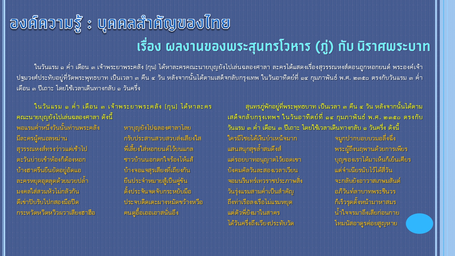 เรียบเรียงโดย : นายธีรบูลย์ มิตรมโนชัย นักวิชาการโสตทัศนศึกษาชำนาญการ หอสมุดแห่งชาติรัชมังคลาภิเษก เชียงใหม่ สำนักศิลปากรที่ ๗ เชียงใหม่ กรมศิลปากร กระทรวงวัฒนธรรม