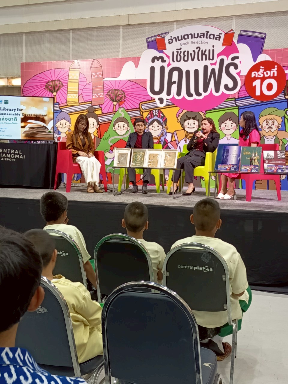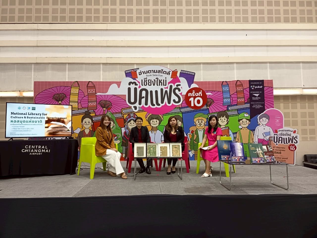 หอสมุดแห่งชาติรัชมังคลาภิเษก เชียงใหม่ ร่วมเสวนา หัวข้อ "หอสมุดแห่งชาติแหล่งมรดกศิลปวัฒนธรรมและการพัฒนาที่ยั่งยืน : National Library for Culture & Sustainable Development" ในงานเชียงใหม่บุ๊คแฟร์ครั้งที่ ๑๐