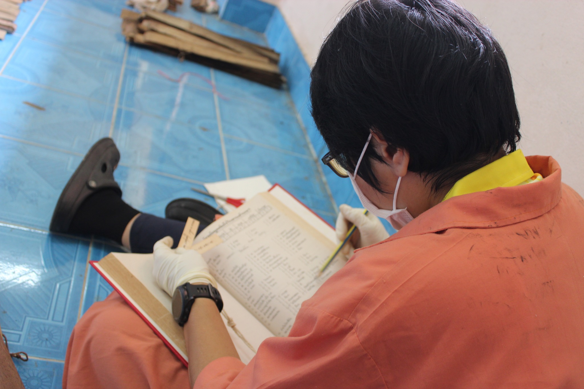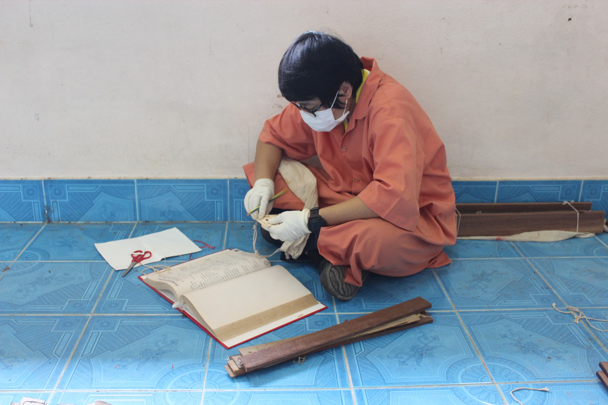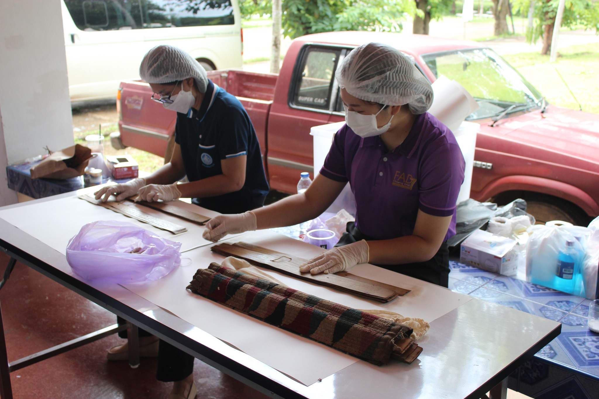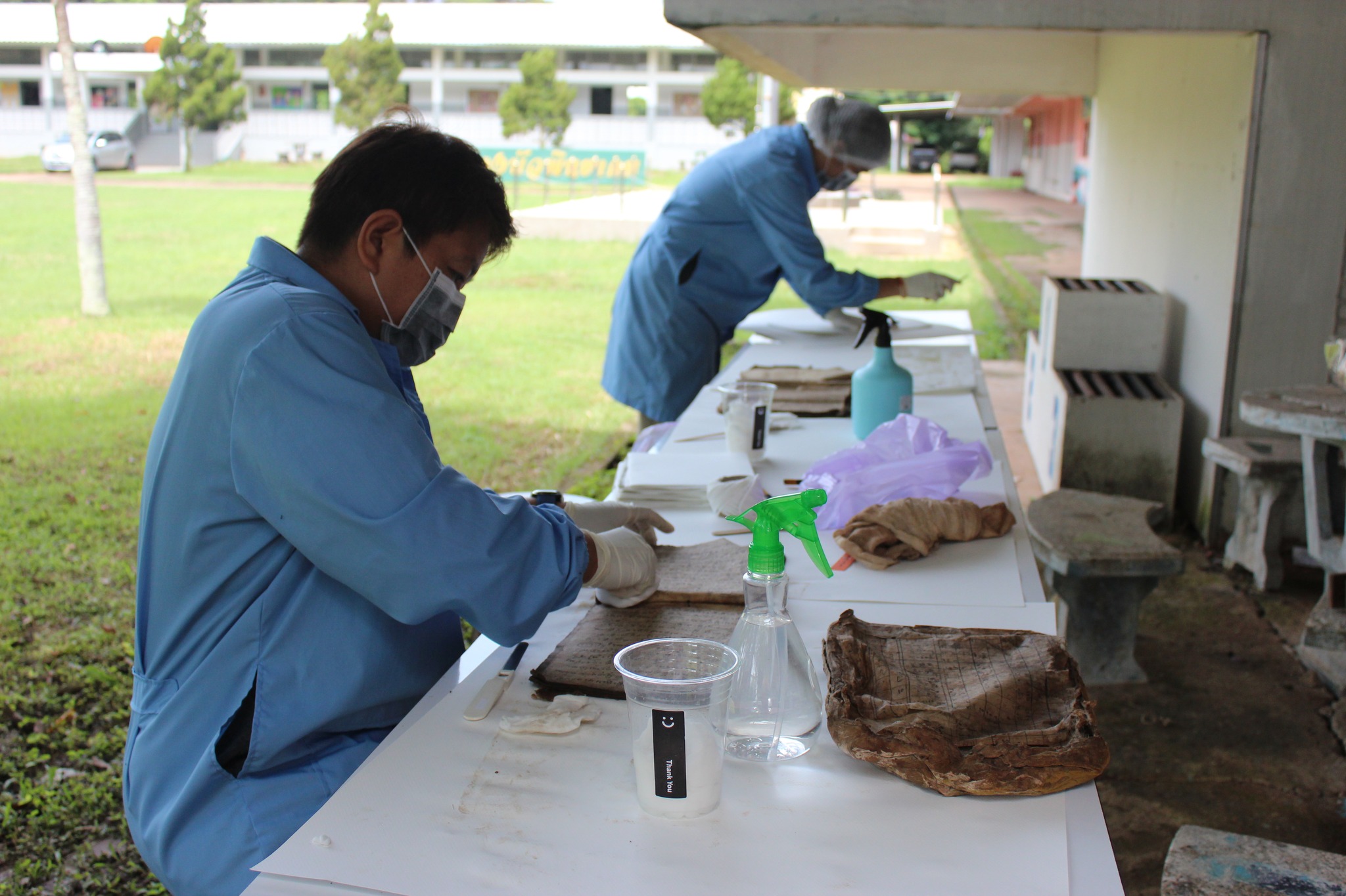 ๑. อนุรักษ์เอกสารโบราณด้วยการทำความสะอาด กำจัดเชื้อรา กำจัดแมลง และเปลี่ยนสายสนอง