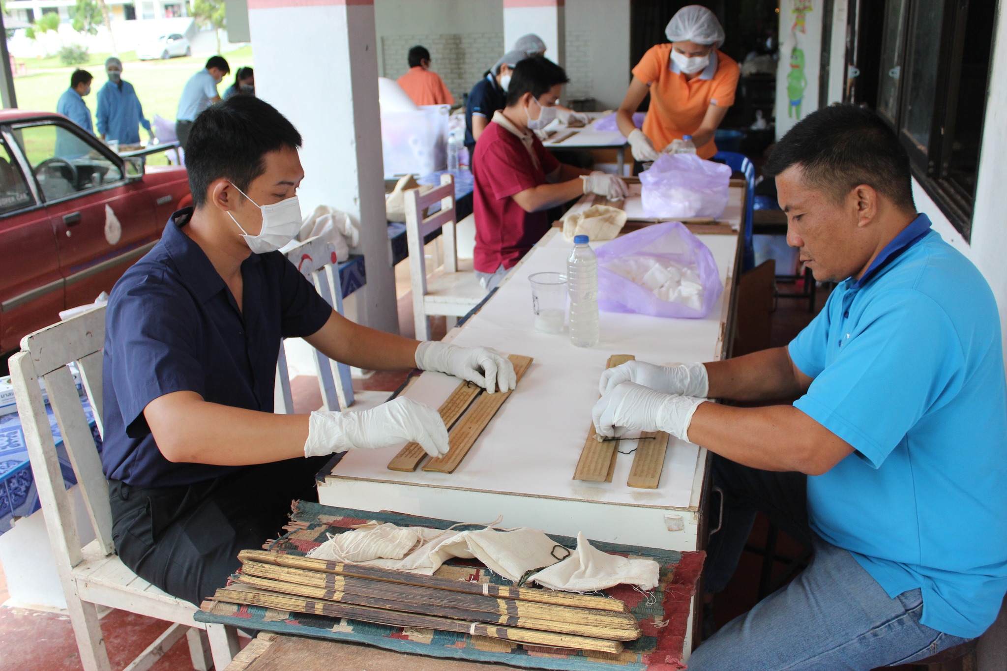 หอสมุดแห่งชาติรัชมังคลาภิเษก เชียงใหม่ พิพิธภัณฑสถานแห่งชาติ น่าน ได้รับความอนุเคราะห์จากกลุ่มงานสงวนรักษาหนังสือ สำนักหอสมุดแห่งชาติ ร่วมลงพื้นที่วัดหนองบัว ตำบลป่าคา อำเภอท่าวังผา จังหวัดน่าน เป็นวันที่ ๒ เพื่อดำเนินการอนุรักษ์เอกสารโบราณที่ได้รับความเสียหายจากเหตุการณ์อุทกภัย