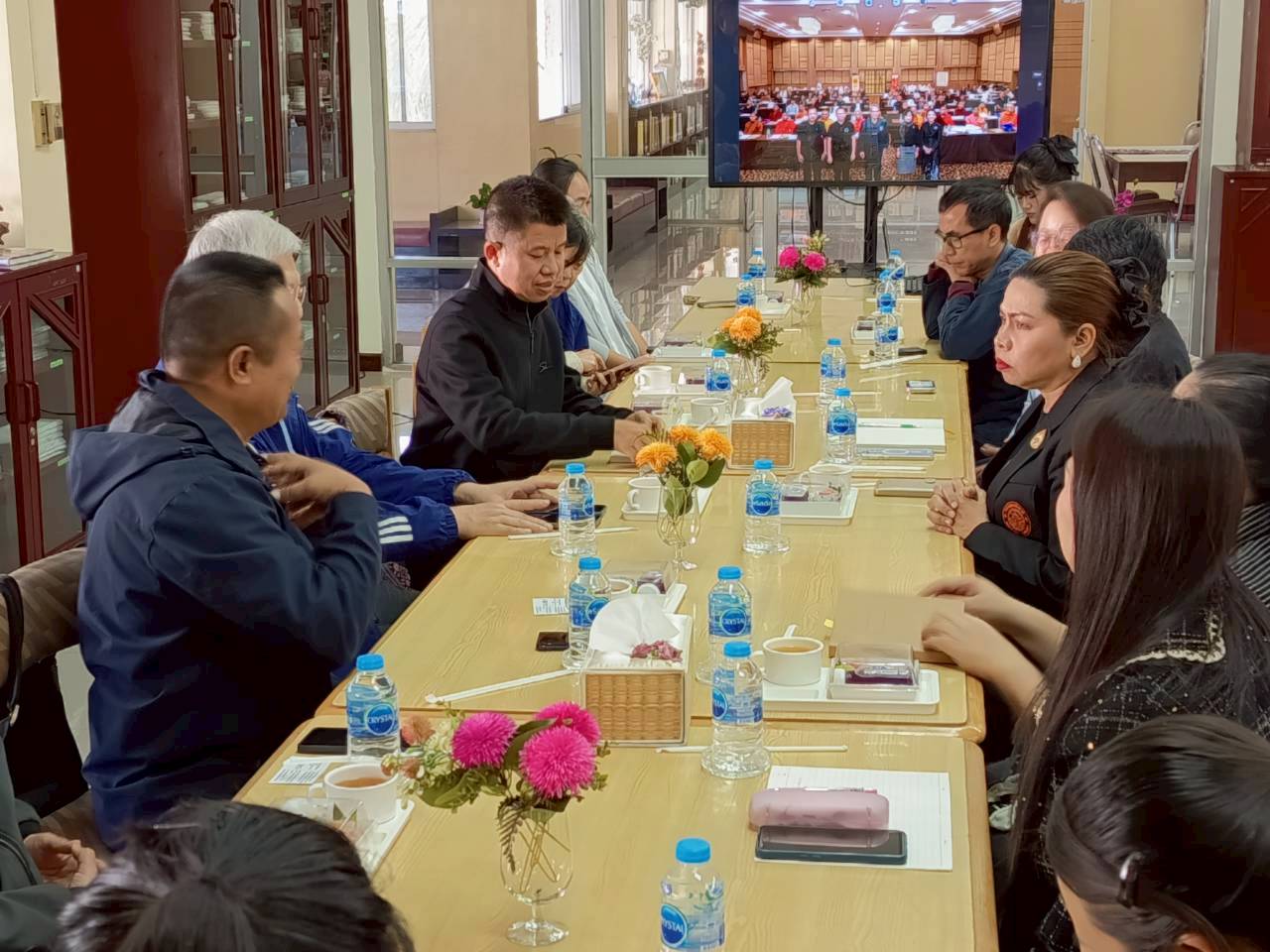 คณะผู้บริหารและเจ้าหน้าที่ของหอสมุดแห่งชาติเขตปกครองตนเองชนชาติไท สิบสองพันนา มณฑลยูนนาน (Xishungbanna Dai Atonomous Prefecture Library, Yunnan) และ สถาบันอนุรักษ์หนังสือโบราณจีน มหาวิทยาลัยฟูตาน เมืองเซี่ยงไฮ้ (Institute for Preservation and Conservation of Chinese Ancient Books, Futan University) สาธารณรัฐประชาชนจีน จำนวน ๑๔ คน เยี่ยมชมและศึกษาดูงานเอกสารโบราณ หอสมุดแห่งชาติรัชมังคลาภิเษก เชียงใหม่